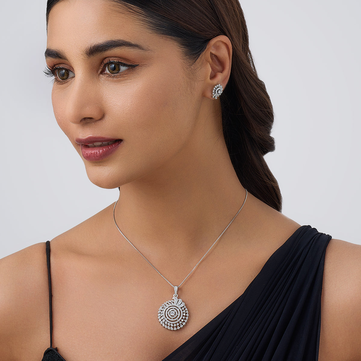 Spiral designs on delicate accessories are enough to give you the outstanding and brilliant look you want for this wedding season. Take a look at our latest white zircon pendant and earrings set to give you the best look. The three polish options will ensure you find the perfect set for your outfit.