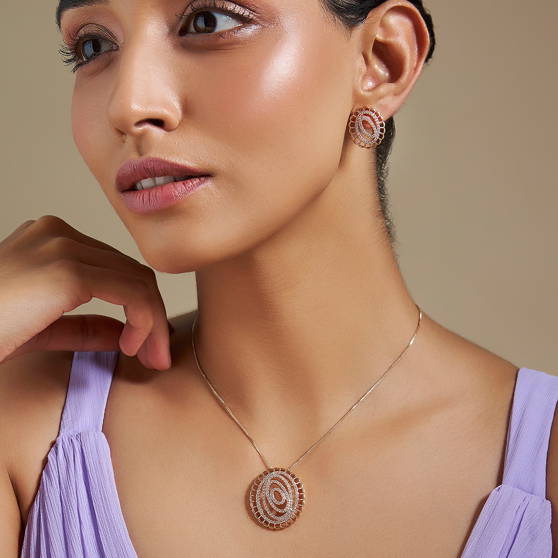 Our exquisite zircon pendant earrings will elevate your elegance with its divine blend of allure and sophistication. Its shiny polish adds to its traditional charm, making it the perfect accessory for ethnic wear like sarees or salwar suits. With the aid of this magnificent piece, you can embrace classic elegance.