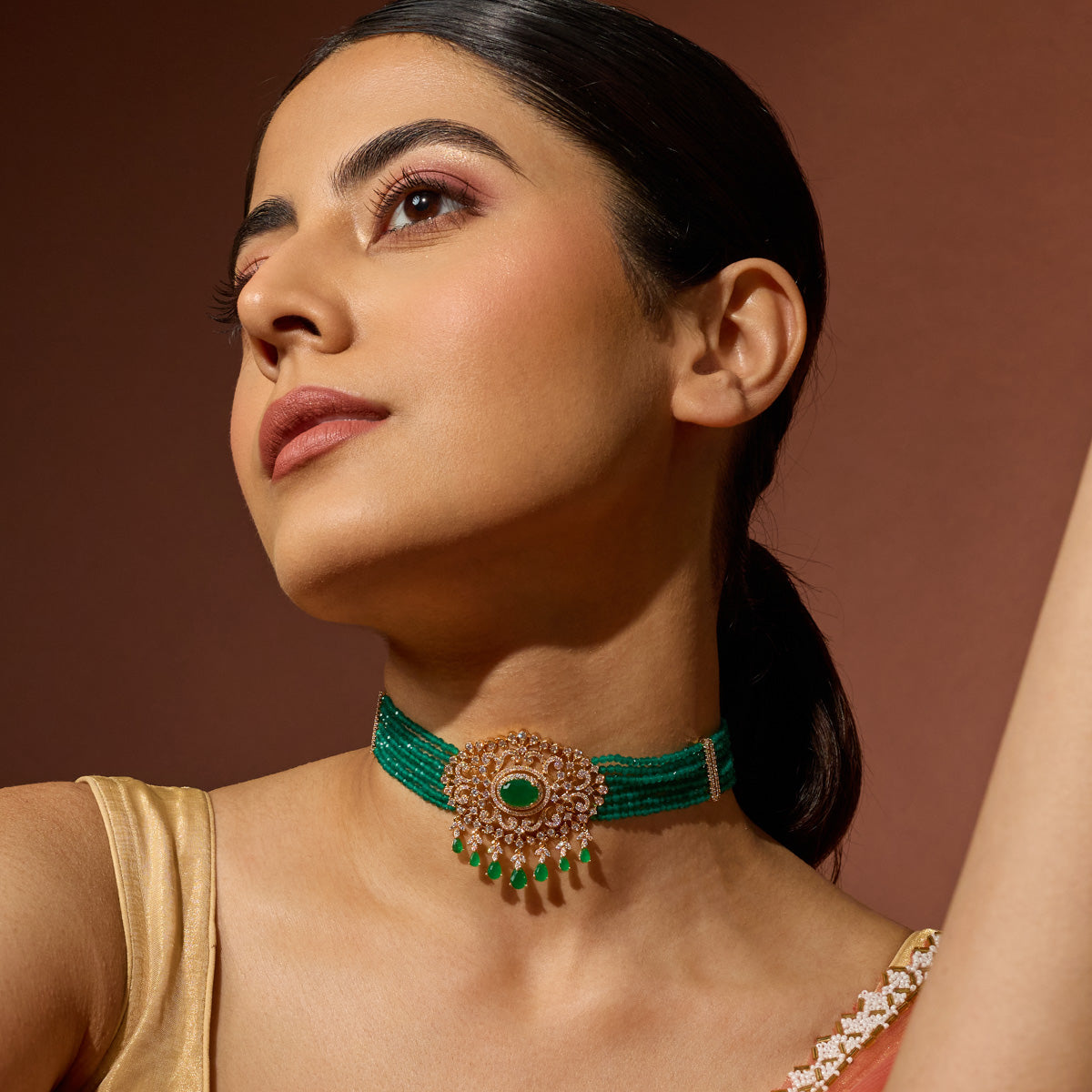 Choker necklaces have the capability of turning any look into something dramatic glamorous and sophisticated, something that long necklaces may fail to achieve. These are made to hug around your neck, catching attention on your collarbone and adding that special touch to your neckline. This style has been the celebrant of history, from the royal courts of Europe to the red carpets of Bollywood, displaying the versatility and lasting appeal of choker designs.