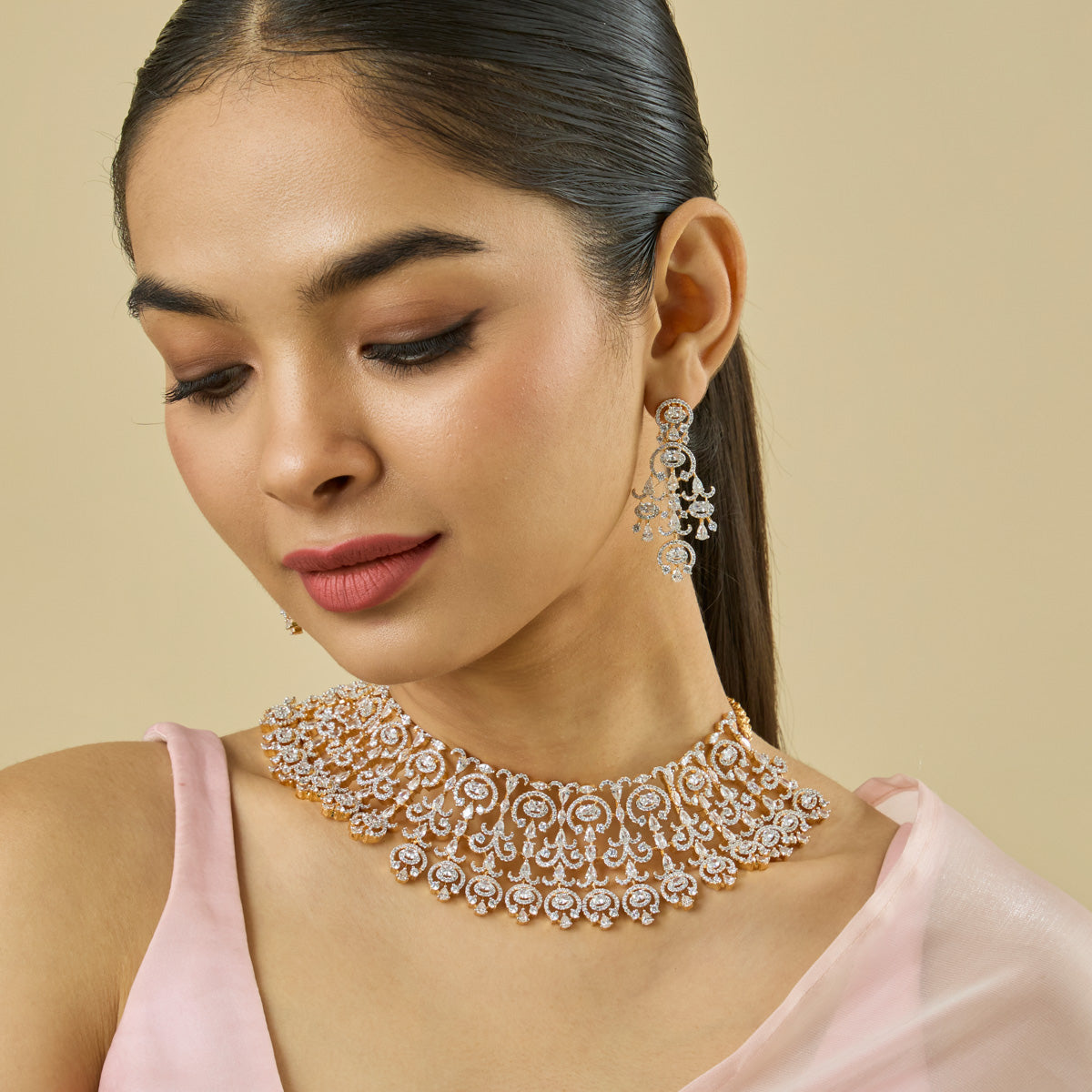 Choker necklaces have the capability of turning any look into something dramatic glamorous and sophisticated, something that long necklaces may fail to achieve. These are made to hug around your neck, catching attention on your collarbone and adding that special touch to your neckline. This style has been the celebrant of history, from the royal courts of Europe to the red carpets of Bollywood, displaying the versatility and lasting appeal of choker designs.