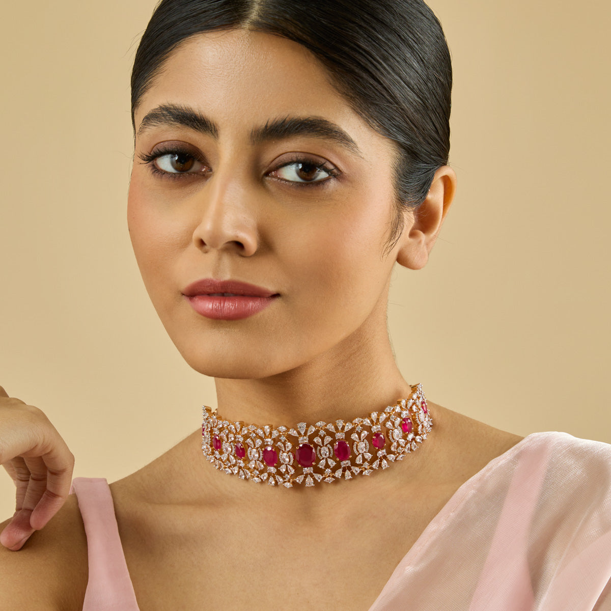 Choker necklaces have the capability of turning any look into something dramatic glamorous and sophisticated, something that long necklaces may fail to achieve. These are made to hug around your neck, catching attention on your collarbone and adding that special touch to your neckline. This style has been the celebrant of history, from the royal courts of Europe to the red carpets of Bollywood, displaying the versatility and lasting appeal of choker designs.