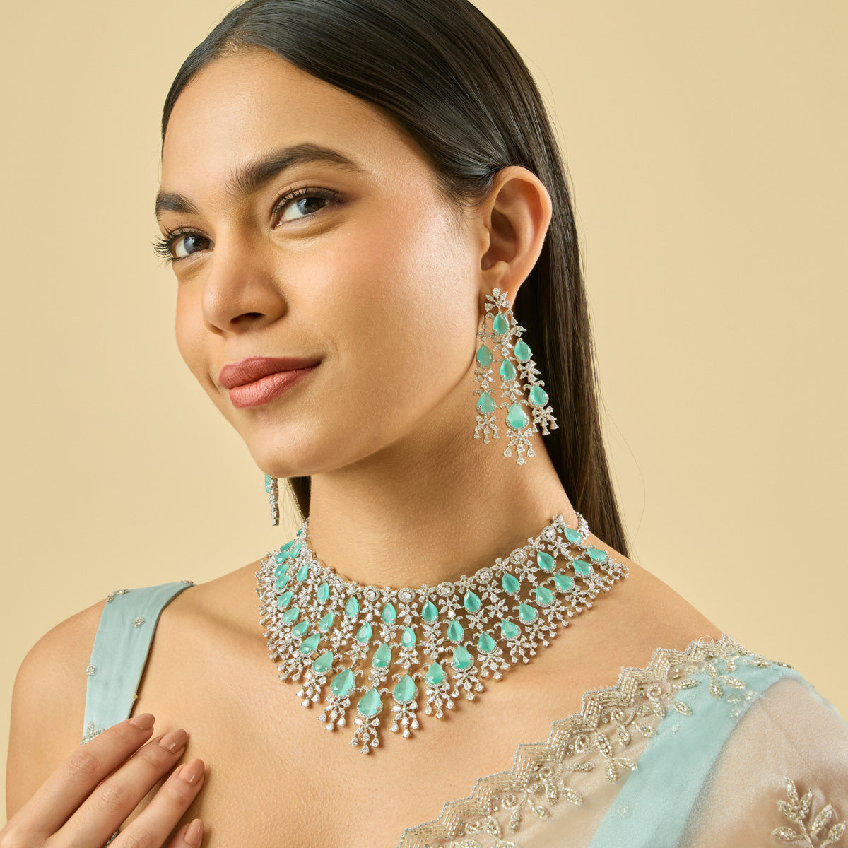Traditional Look: Pair an Indian choker necklace with a saree or lehenga for an elegant and timeless look. Complement your choker with matching earrings and a Mangalsutra for a balanced and cohesive look.