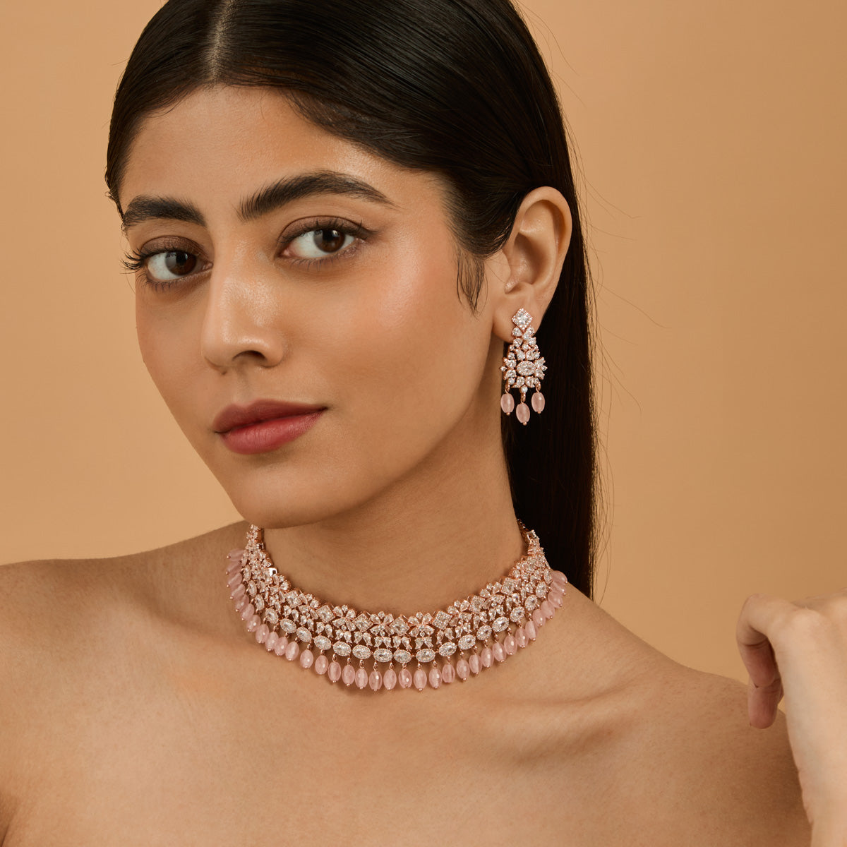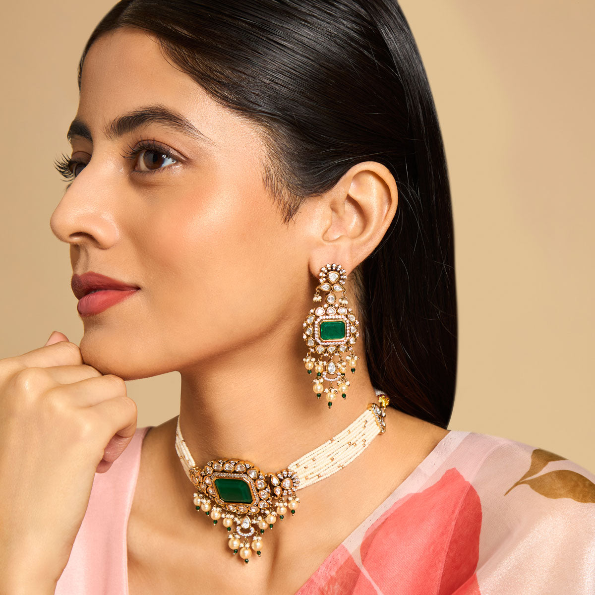 Choker necklaces have the capability of turning any look into something dramatic glamorous and sophisticated, something that long necklaces may fail to achieve. These are made to hug around your neck, catching attention on your collarbone and adding that special touch to your neckline. This style has been the celebrant of history, from the royal courts of Europe to the red carpets of Bollywood, displaying the versatility and lasting appeal of choker designs.