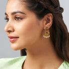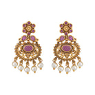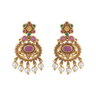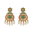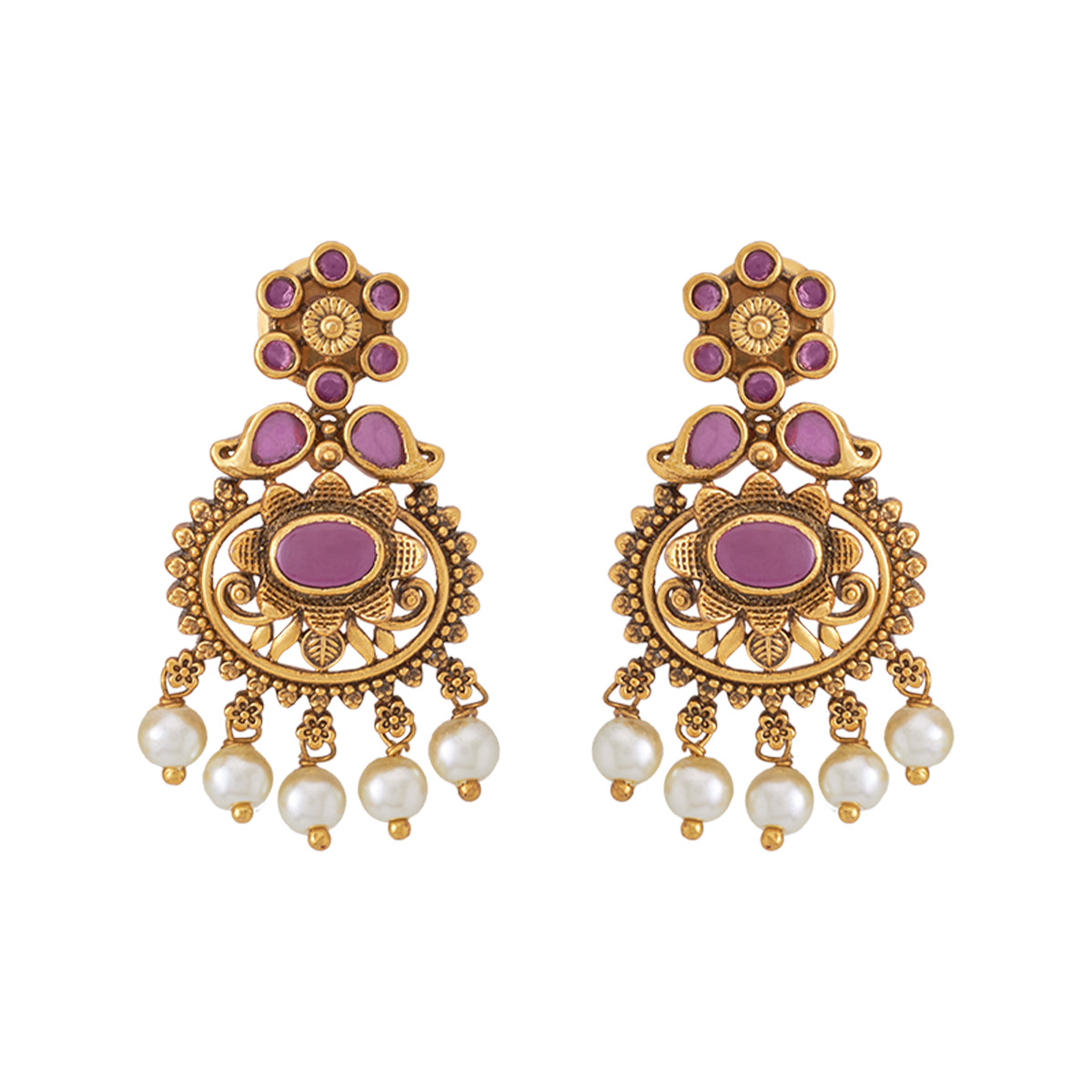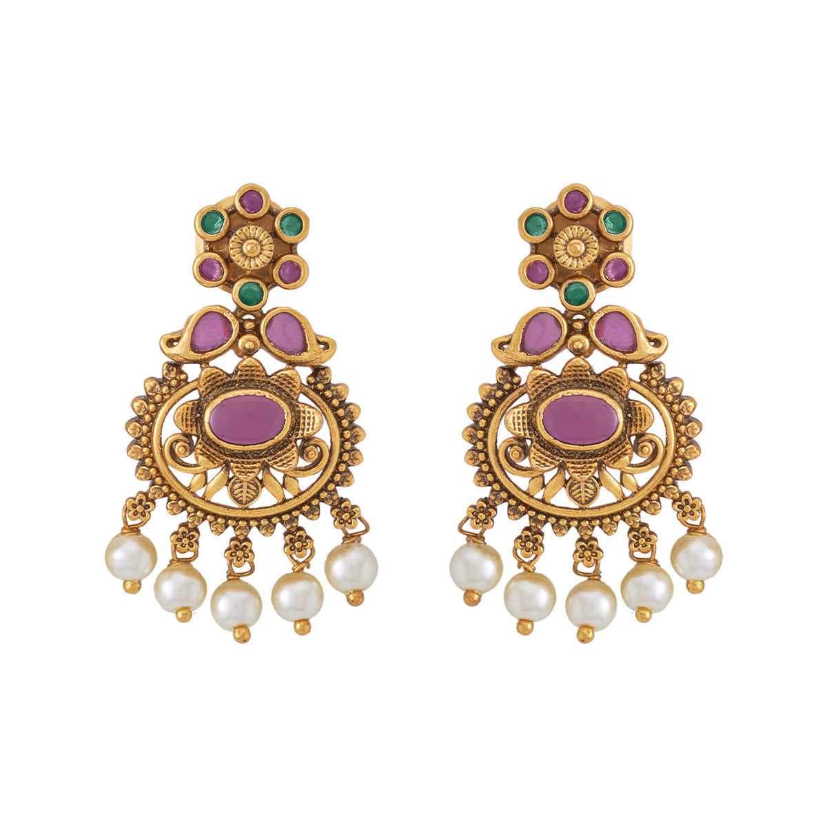 Whether you are dressing up for a special night or want to add polish to your workday look, this exquisite antique earring set is designed to express your individuality. The vivid shade of ruby/ green/ ruby-green of this copper-alloyed ornament will add a touch of glamour to your look. Each special synthetic stone and bead is crafted in a classic cluster to ooze a delightful aura.