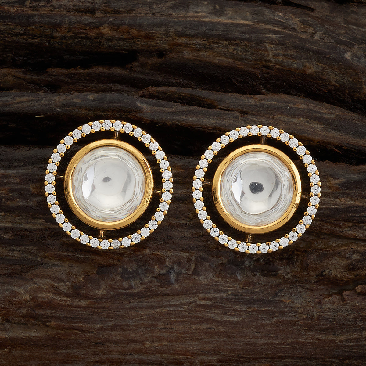 Kushal's White Casual Wear Stud Earring With Kundan Work