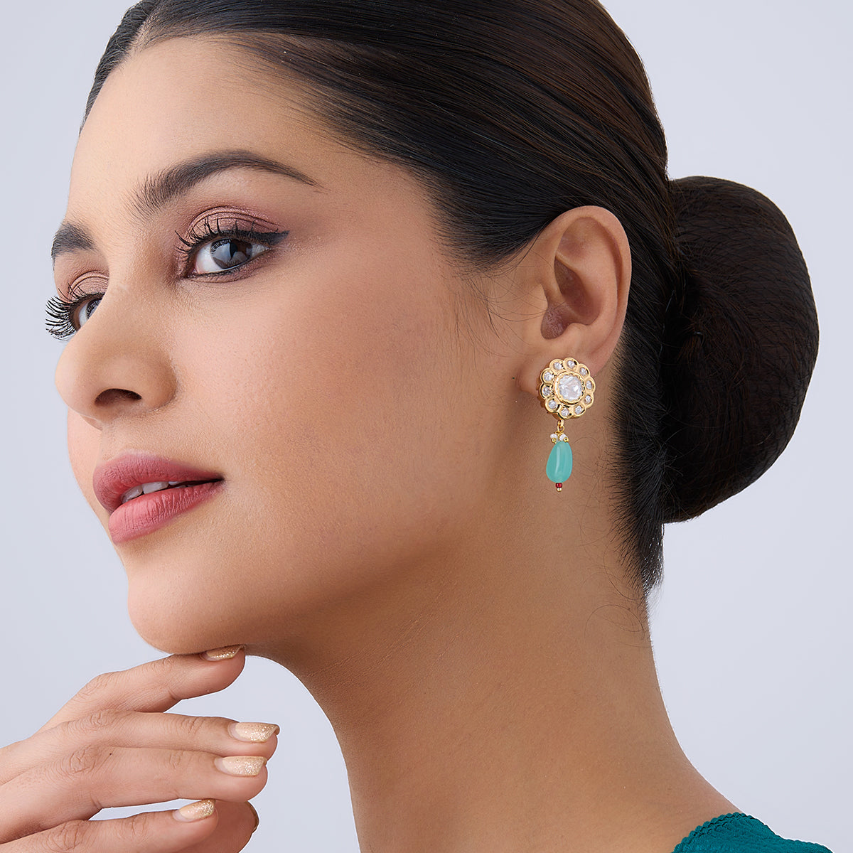 Kundan earrings are one of the best accessories to wear with a traditional outfit, and with matching accessories, you can also wear them with fancy outfits. Keeping this in mind, we present our latest pair of Kundan earrings for your accessory collection. All you have to do is wear them with your favorite outfit to be the trendsetter.