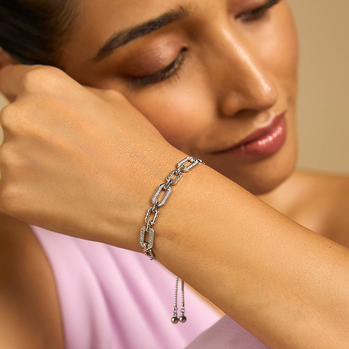 Indulge in understated luxury with our zircon bracelet. Featuring gleaming white zircon stones set in your choice of gold, rhodium, or rose gold polish on a durable copper alloy base. Weighing just 5 grams with an adjustable feature, it's the epitome of elegance and versatility. Adorn your wrist with sophistication.