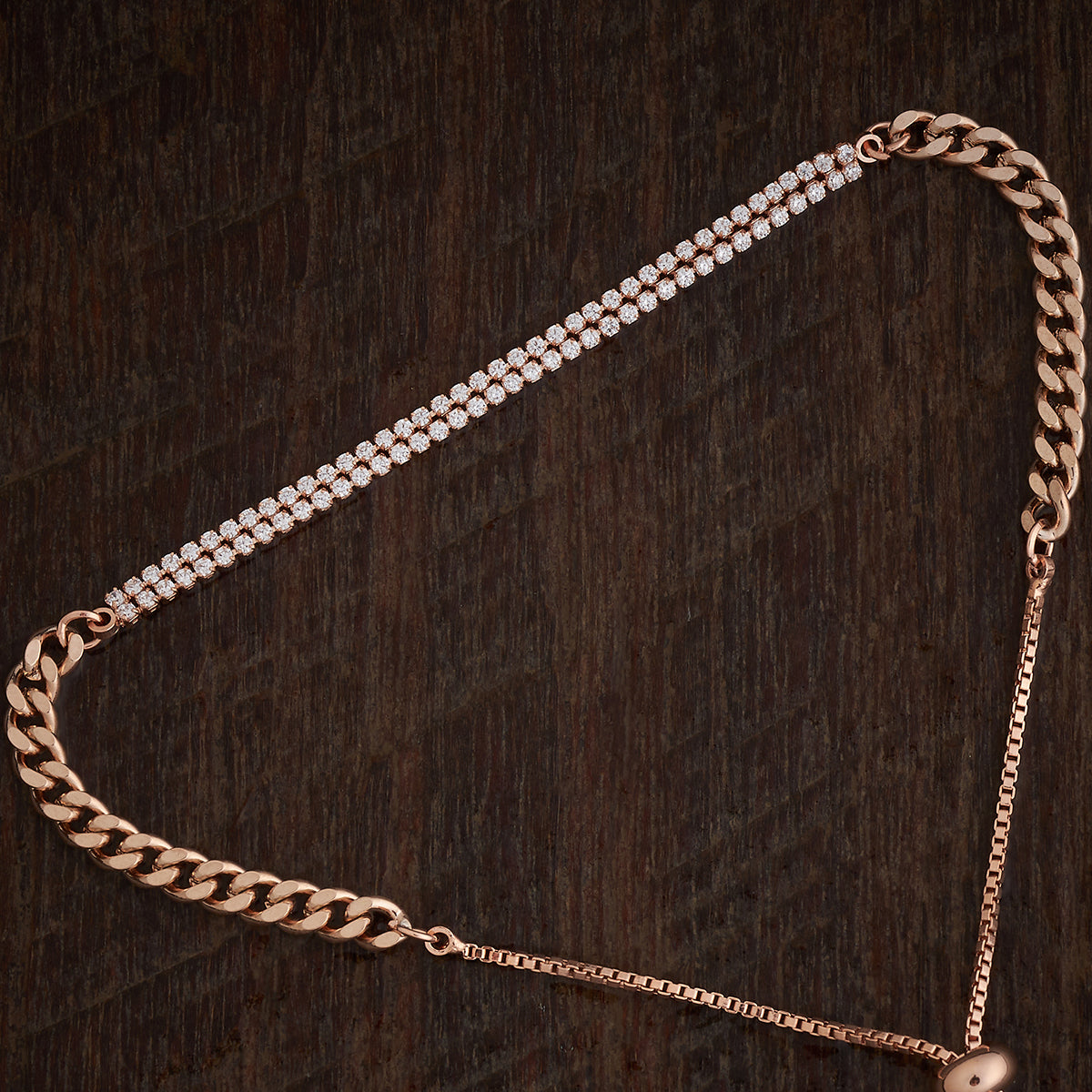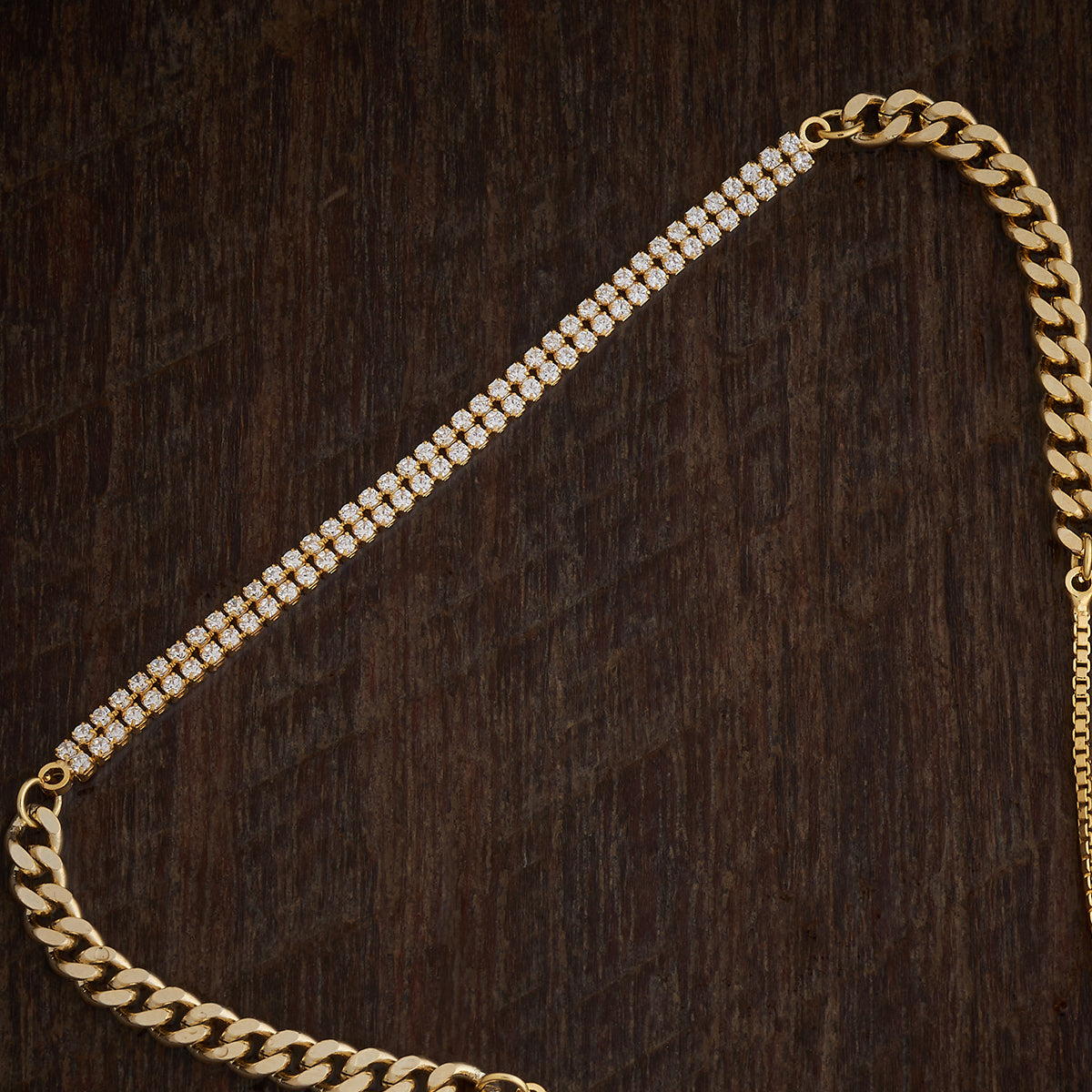 Kushal's zircon bracelet is sure to captivate hearts and turn heads wherever you go. Crafted with precision from copper alloy and styled with dazzling white zircons, this bracelet is a testament to timeless beauty. Available in three finishes to choose from, it offers a unique touch of glamour to suit your individual style.