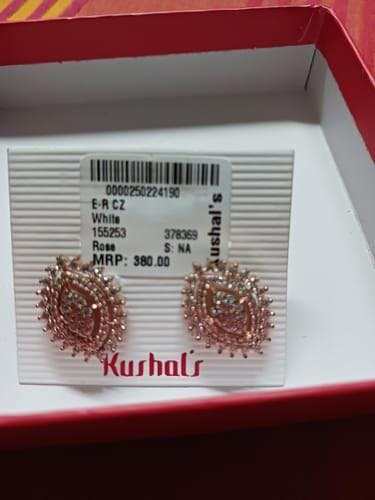 The eye-catching shape of Kushal's latest white zircon earrings with gold and rose gold polish will make you the centre of attraction. These stud earrings are extremely lightweight and make the perfect partner for fancy events and lavish occasions. Pair them with your favourite outfits.