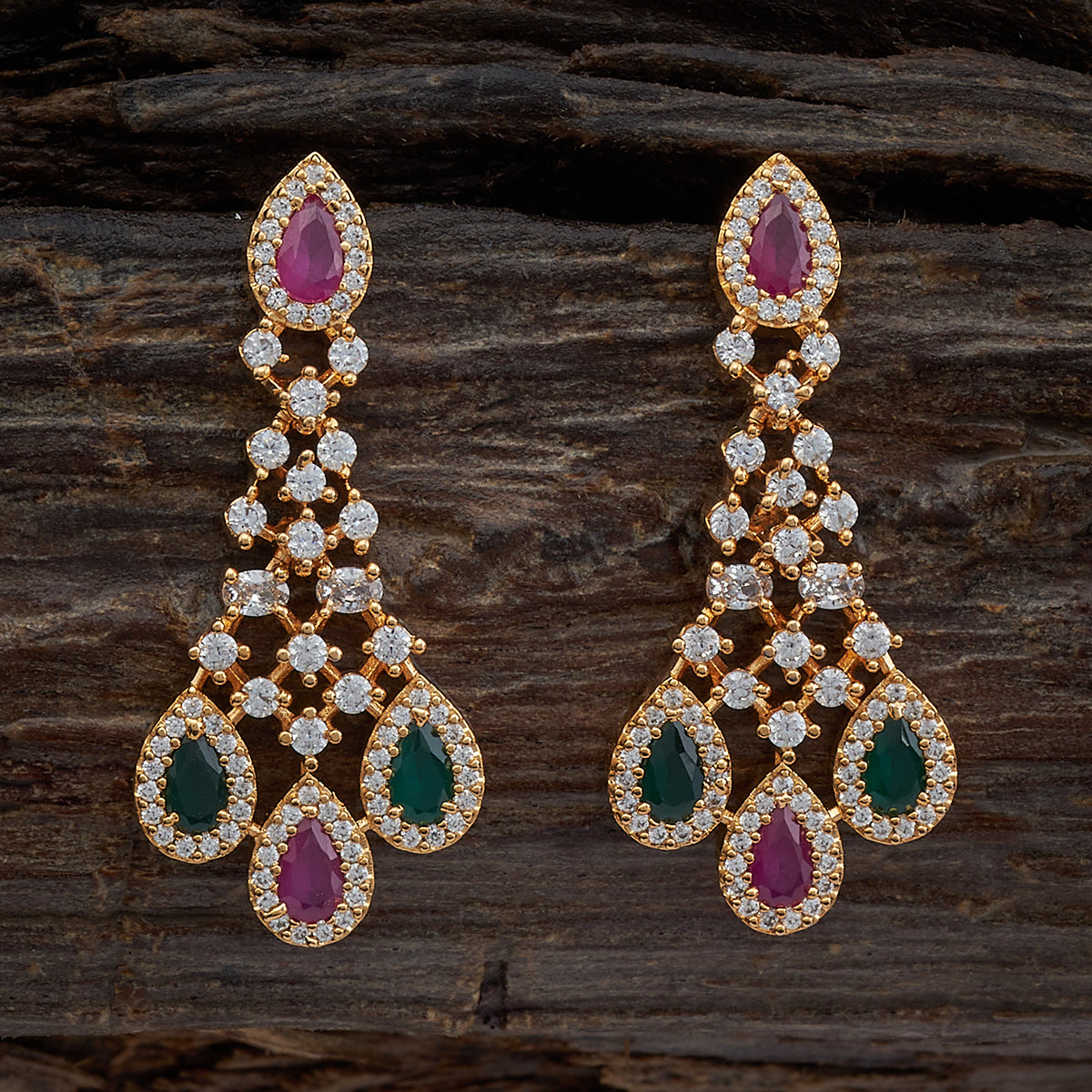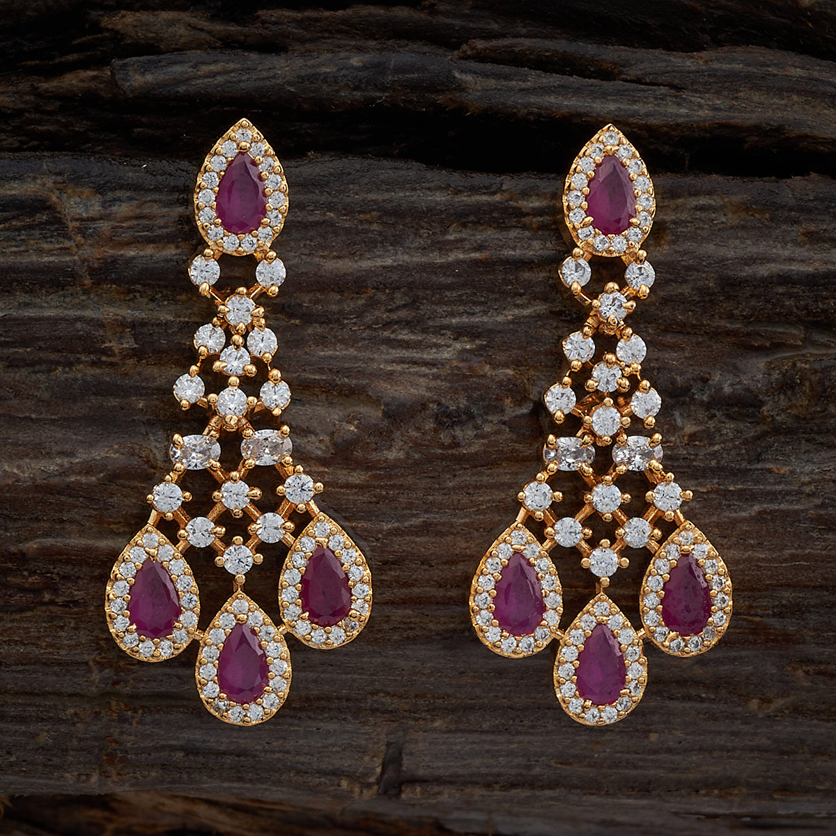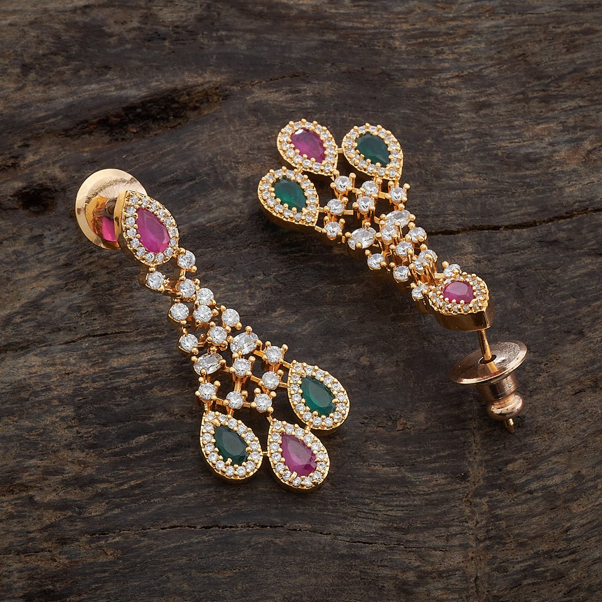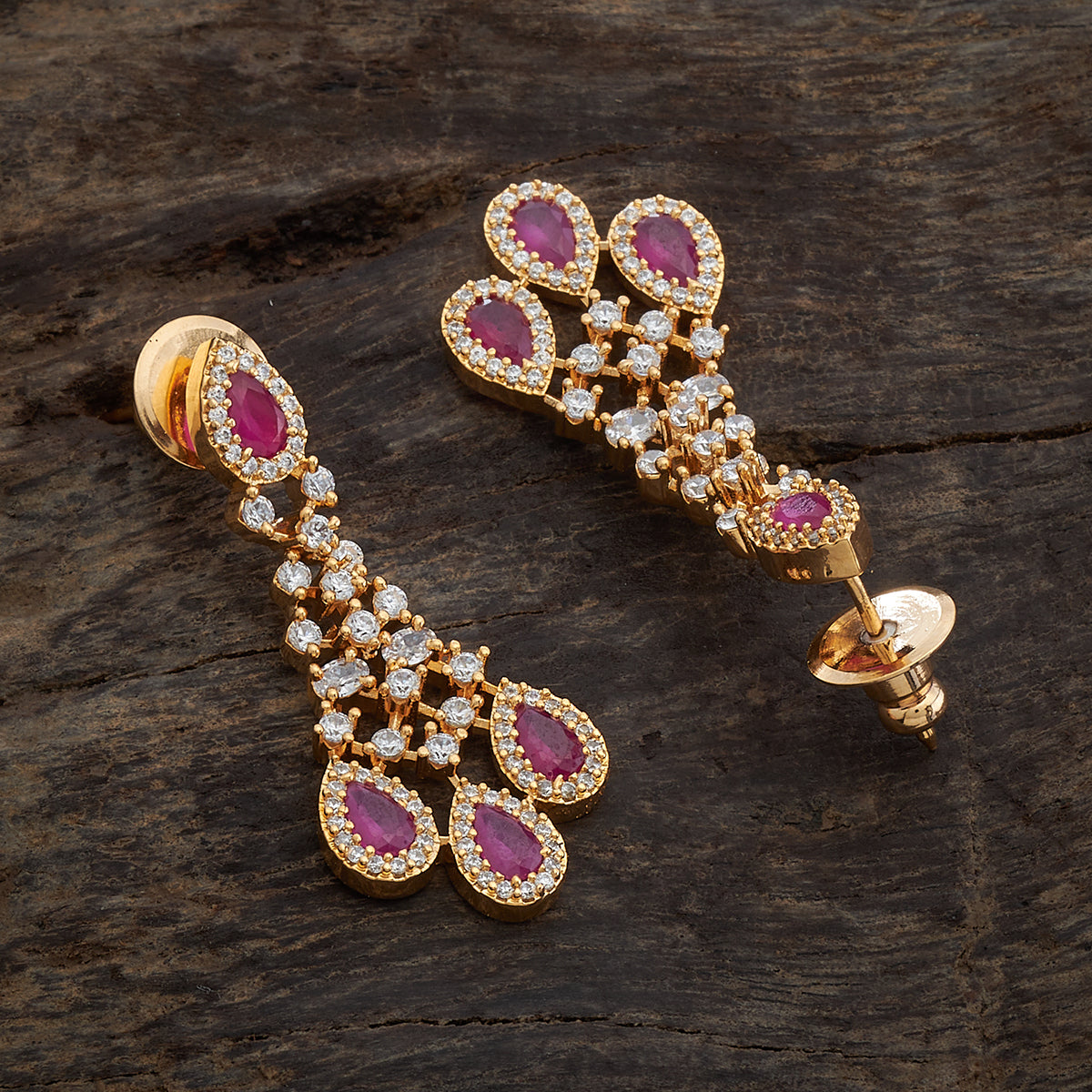 These meticulously crafted zircon earrings feature a push-back closure type for your comfort. The shimmering stones hanging from the earrings create a captivating allure and are available in different colour options. The stunning ruby stone, enhanced with a gold or rose-gold polish, is a versatile choice for any occasion.