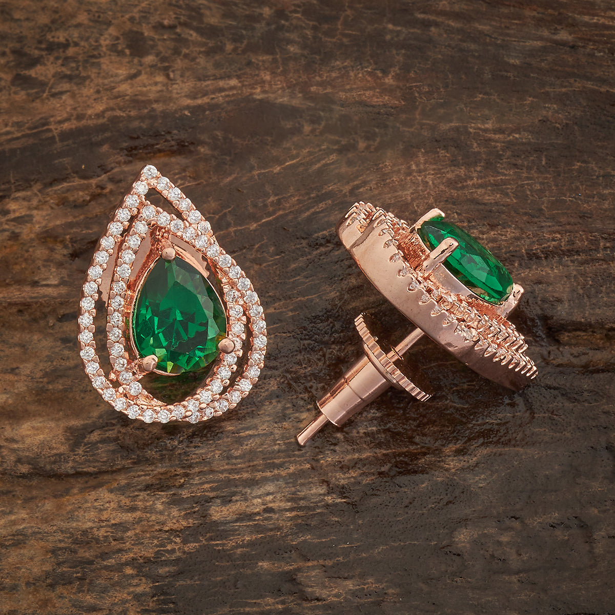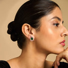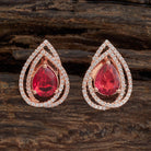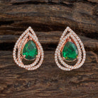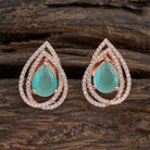 These elegant zircon earring studs feature a central zircon stone, customisable in emerald green, mint, pink, ruby, or sapphire and finished with a luxurious rose gold polish. It can be perfectly paired with both Indian and Western outfits, making it a must-have accessory for timeless sophistication.