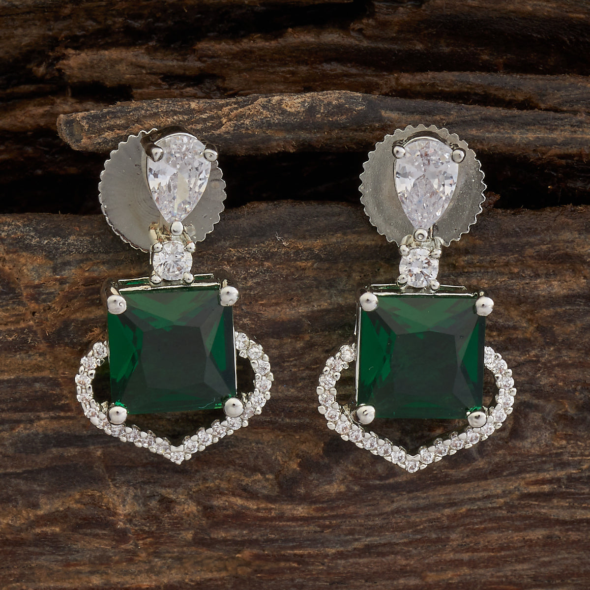 These zircon earrings by Kushal's Fashion Jewellery adds that missing piece to your look. This earring comes in various shades like green, mint, pink, sapphire, and ruby. With a rhodium polish, these hanging earrings are the perfect blend of modern and classic styles.