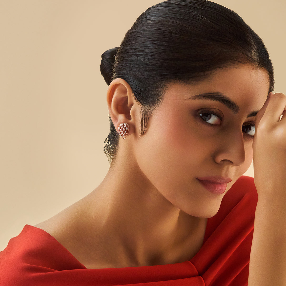 Enhance your Western or Indo-Western look with these elegant zircon stud earrings. Featuring a brilliant white zircon stone and available in rhodium, rhodium-gold, or rose gold polish, these earrings add a touch of sophistication to any outfit. Perfect for both casual and formal occasions, they exude timeless elegance and style.