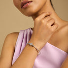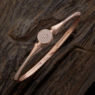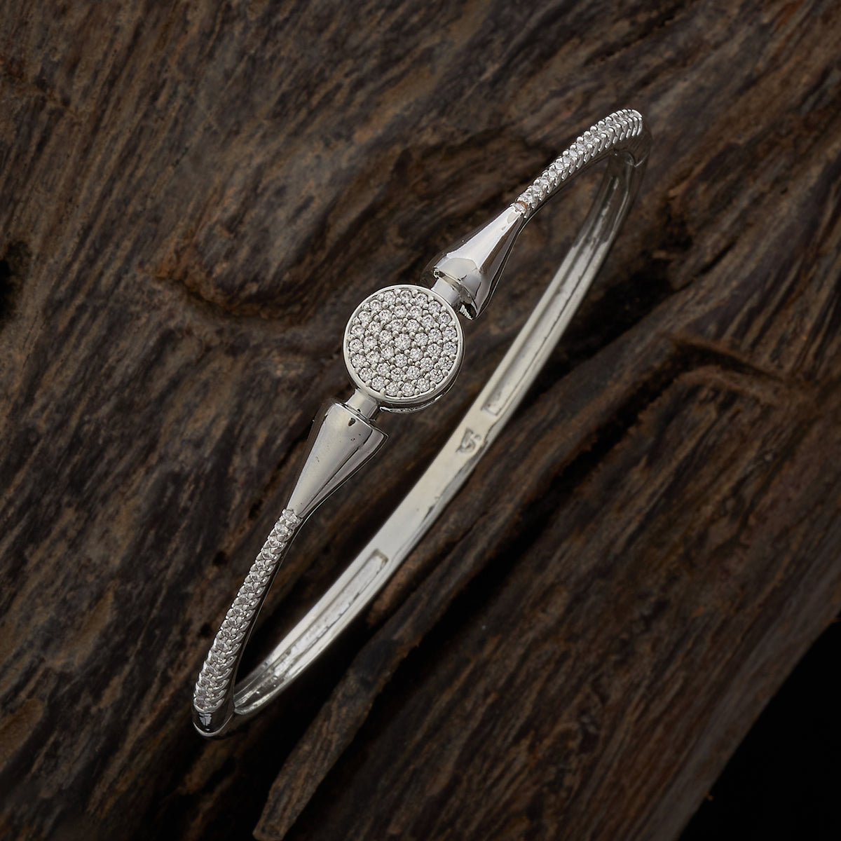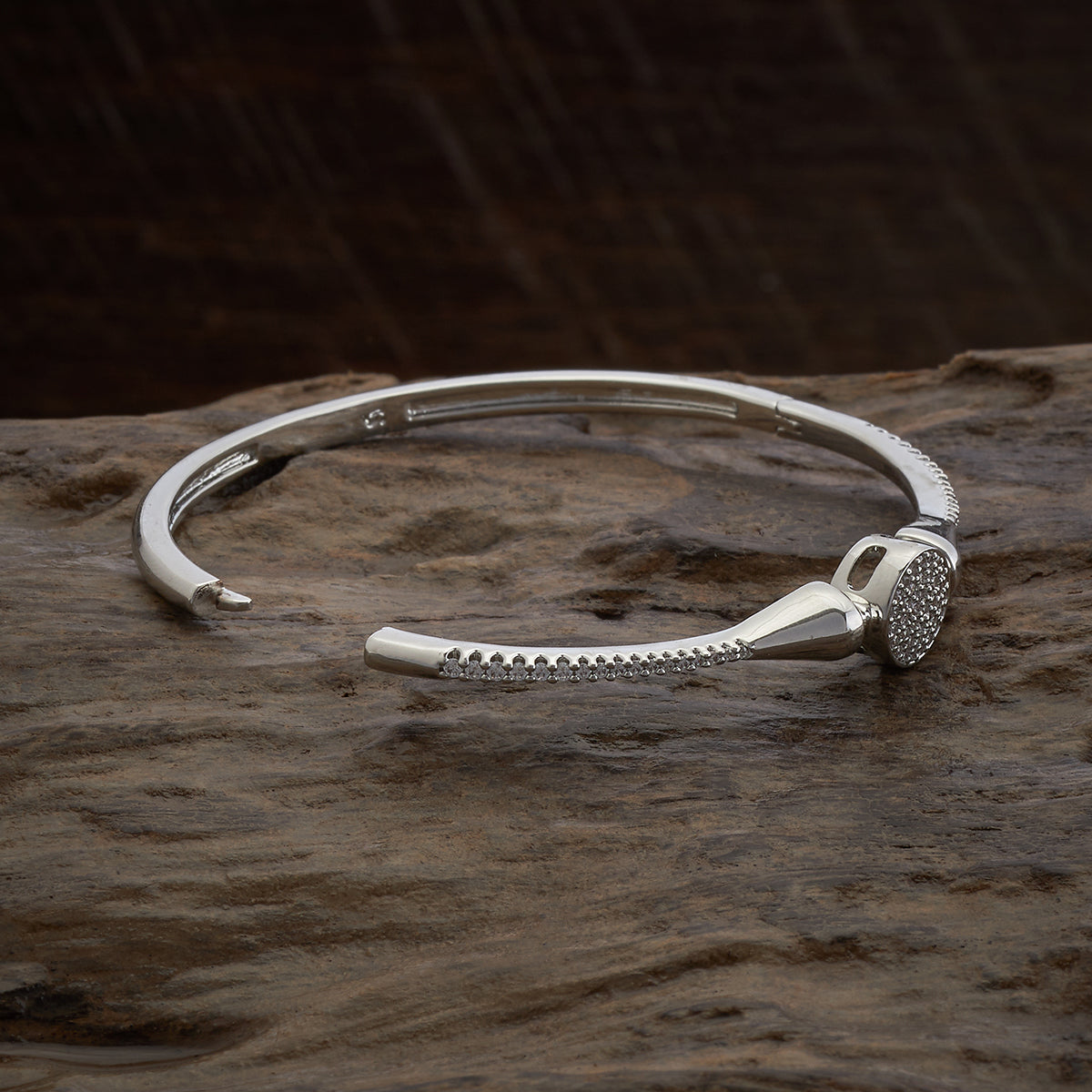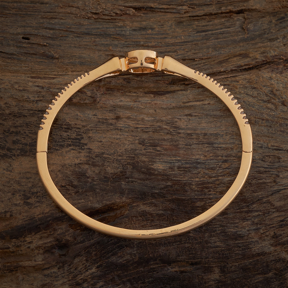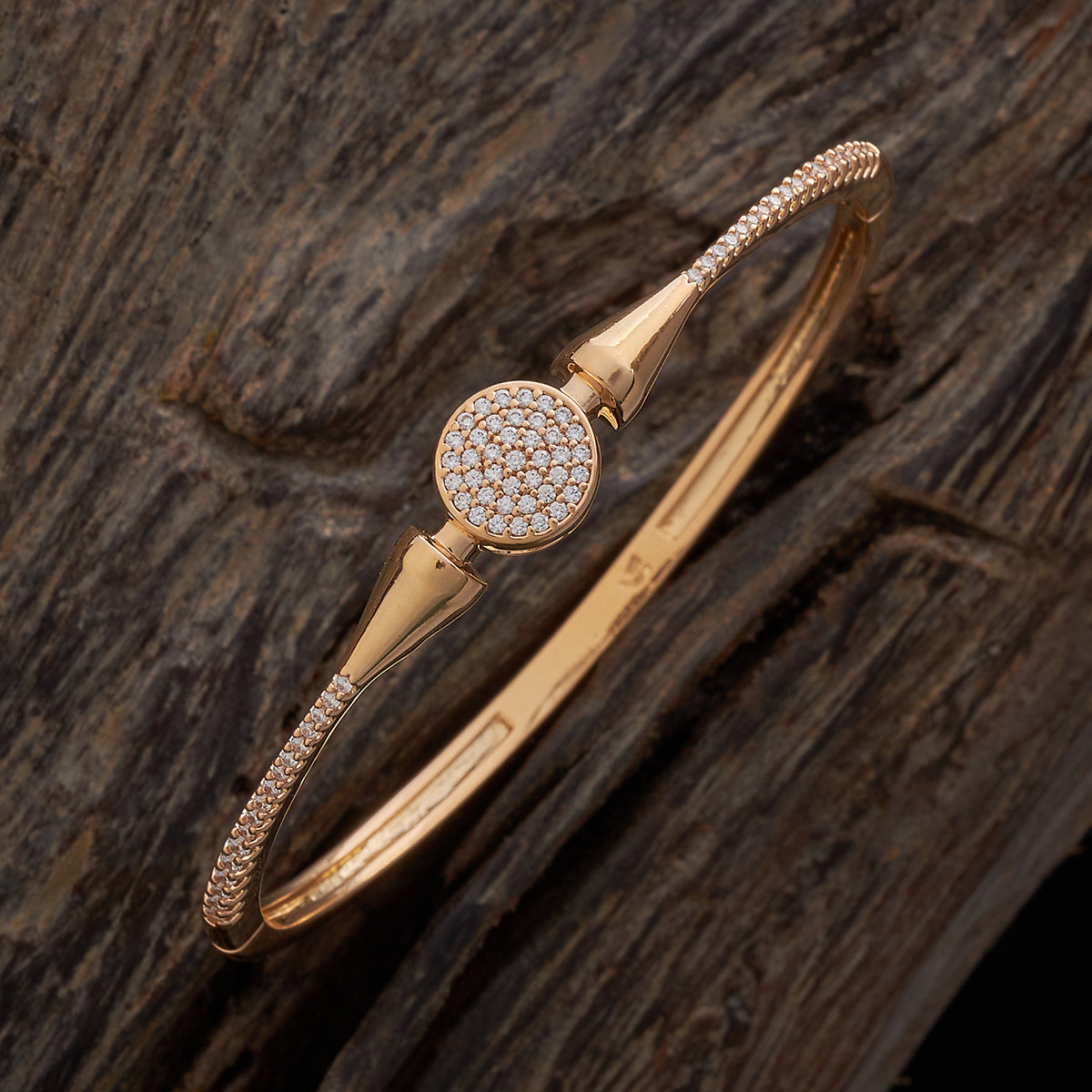 Adorn your wrists with this zircon kada by Kushal's Fashion Jewellery. Adorned with multiple shimmering zircon stones, the main highlight of this kada is the circular centerpiece. This accessory having multiple polish options adds a touch of sophistication to any ensemble. Made from high-quality copper alloy, it ensures durability and comfort.