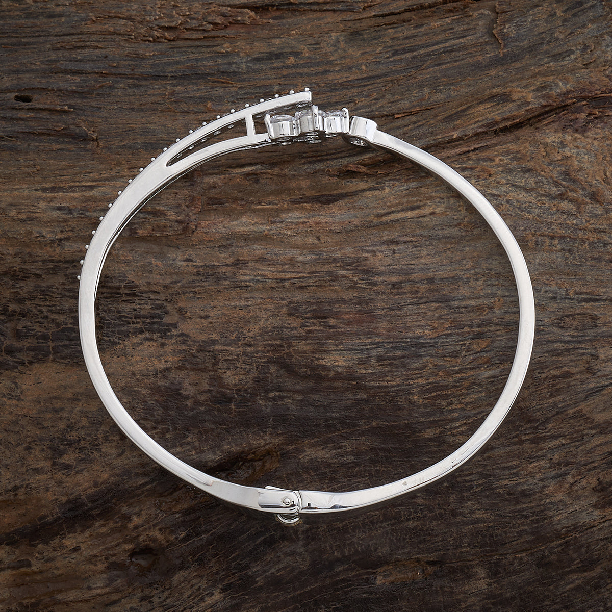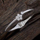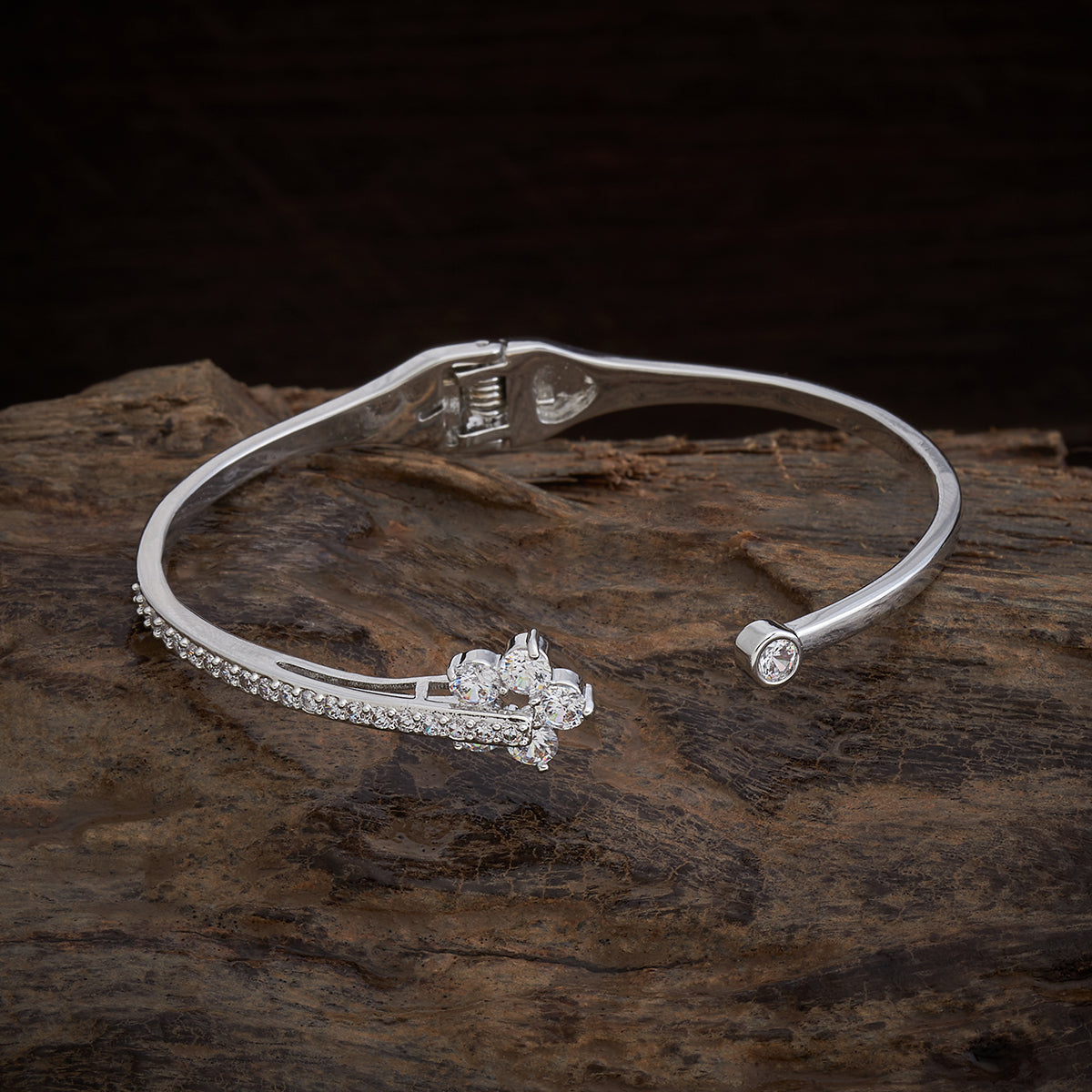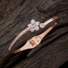 This is Kushal's Fashion Jewellery's exquisite zircon kada with a captivating flower design. Crafted meticulously from high-quality copper alloy, this stunning piece has a locking system for secure wear. Adorned with dazzling zircon stones, it exudes elegance effortlessly. Available in enchanting gold, timeless rhodium, and graceful rose gold polish options, this accessory adds a touch of sophistication to any ensemble.