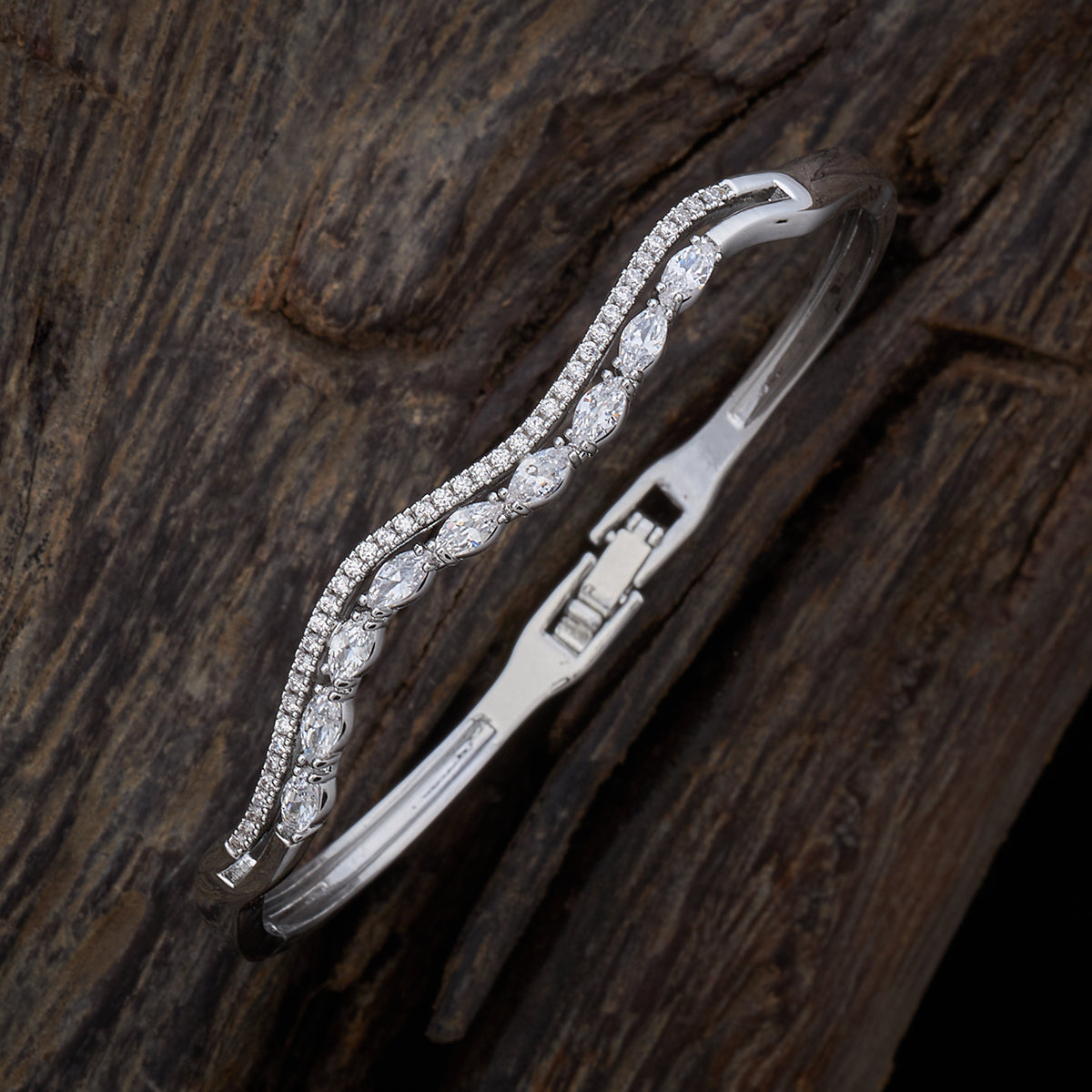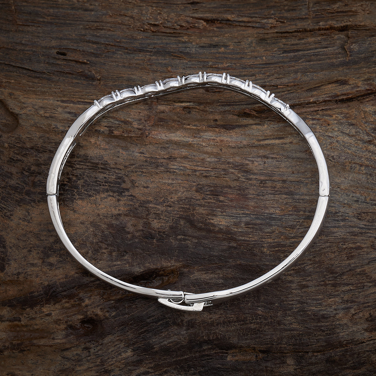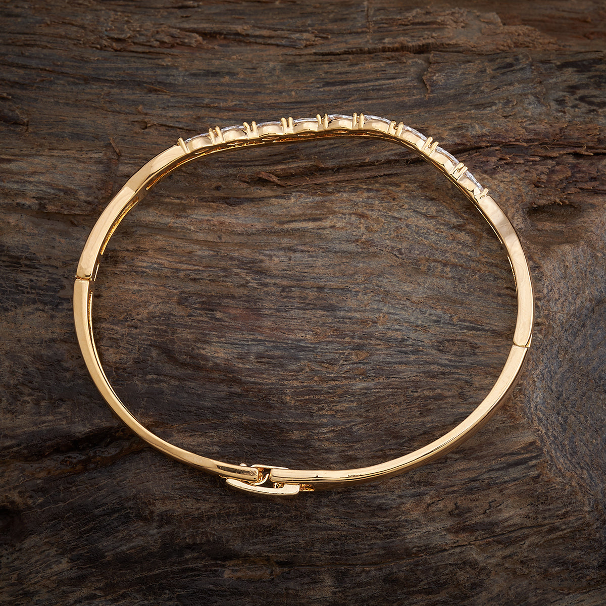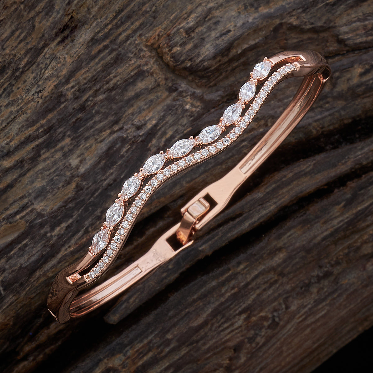 Discover the allure of Kushal's Fashion Jewellery with our zircon kada. Adorned with mesmerizing white stones, this piece is meticulously crafted from copper alloy. Choose from gold, rhodium, or rose gold polish to complement your style. With its secure locking system, elevate your look with sophistication and grace.