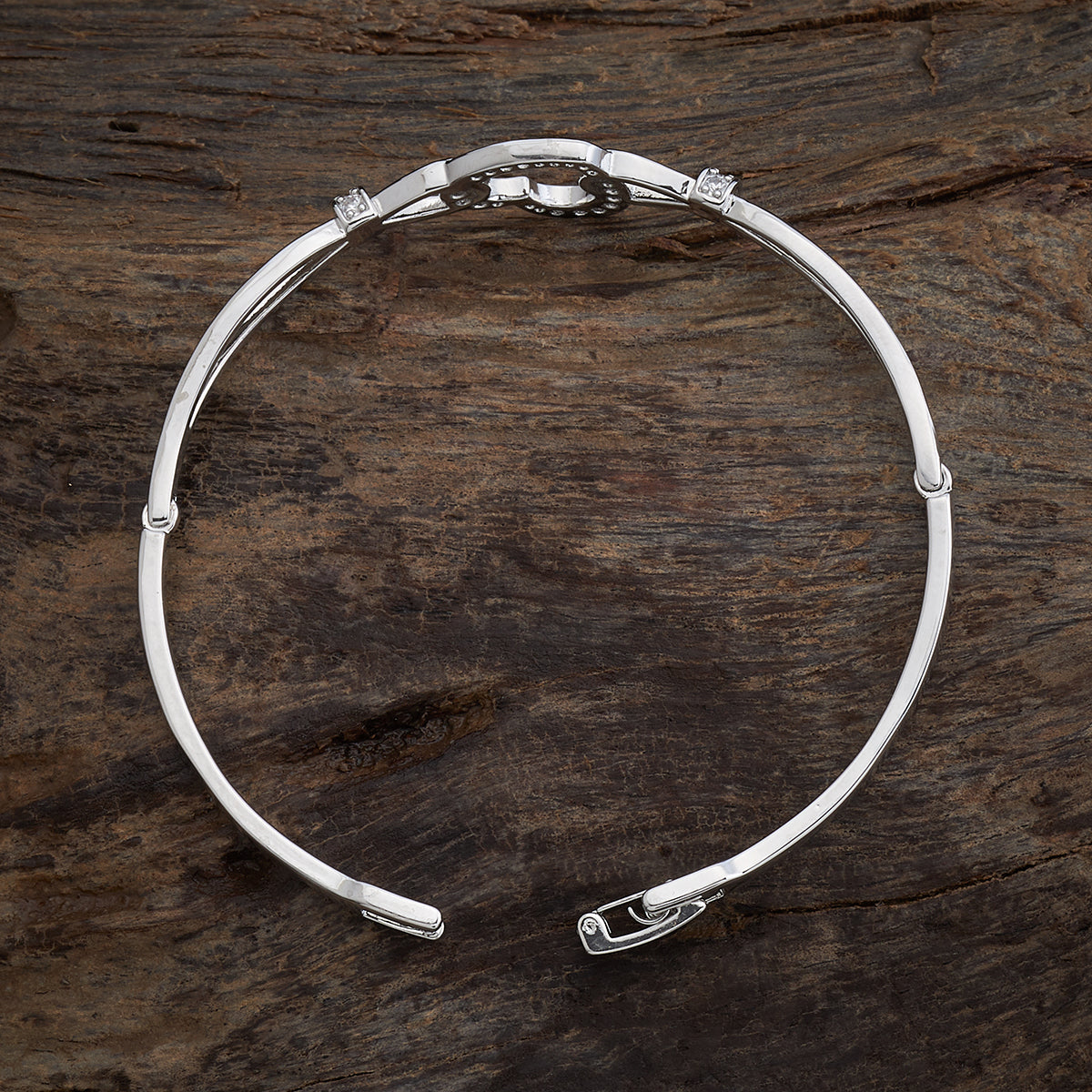 This zircon kada from Kushal's Fashion Jewellery is the perfect accessory to show your confidence. This beauty is studded with white zircon stones and features a heart-shaped design. Available in three different finishes to choose from, it graces your wrist with a touch of shimmering romance.