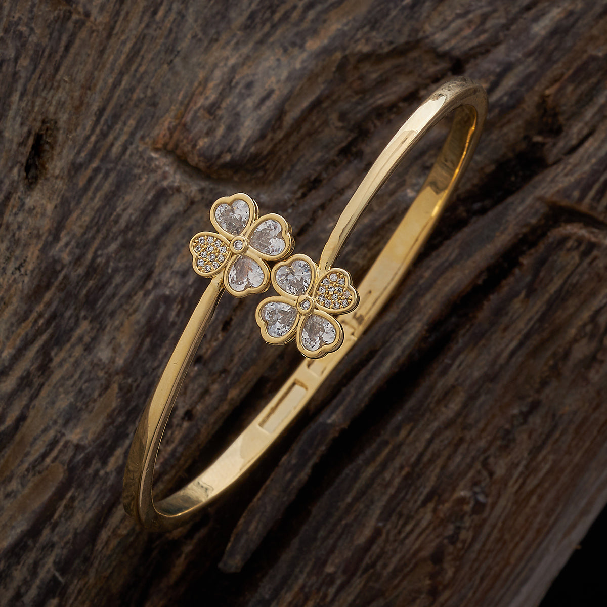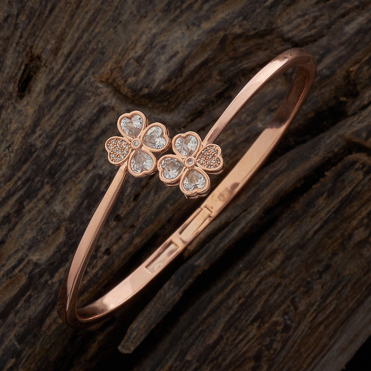 Elevate your look with our zircon kada. Adorned with shimmering white zircons, set against a choice of gold, rhodium, or rose gold polish on a durable copper alloy base. At 12 gram, it's lightweight and adjustable, ensuring a comfortable fit. Embrace elegance and versatility with this stunning kada.