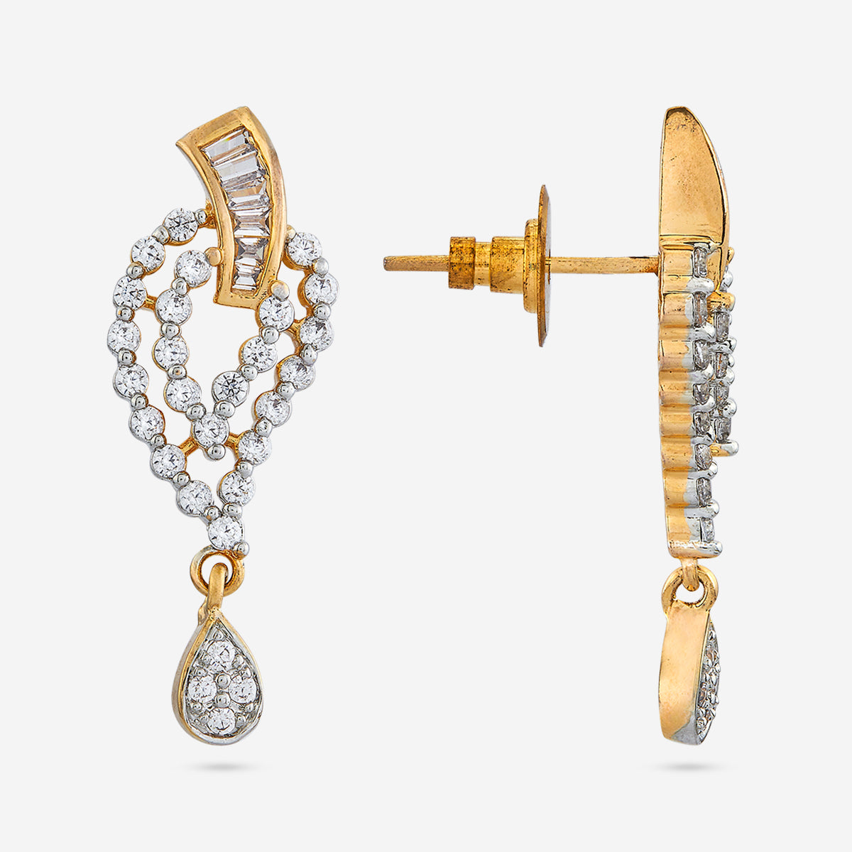 Stylishly studded with sparkling cubic zircons, this elegantly designed pendant earring set is a striking fashion accessory. The refined gold plating compliments the white pendant earring set and looks magnificent with any casual attire. This pendant earring set is designed to magnify your look on every occasion.