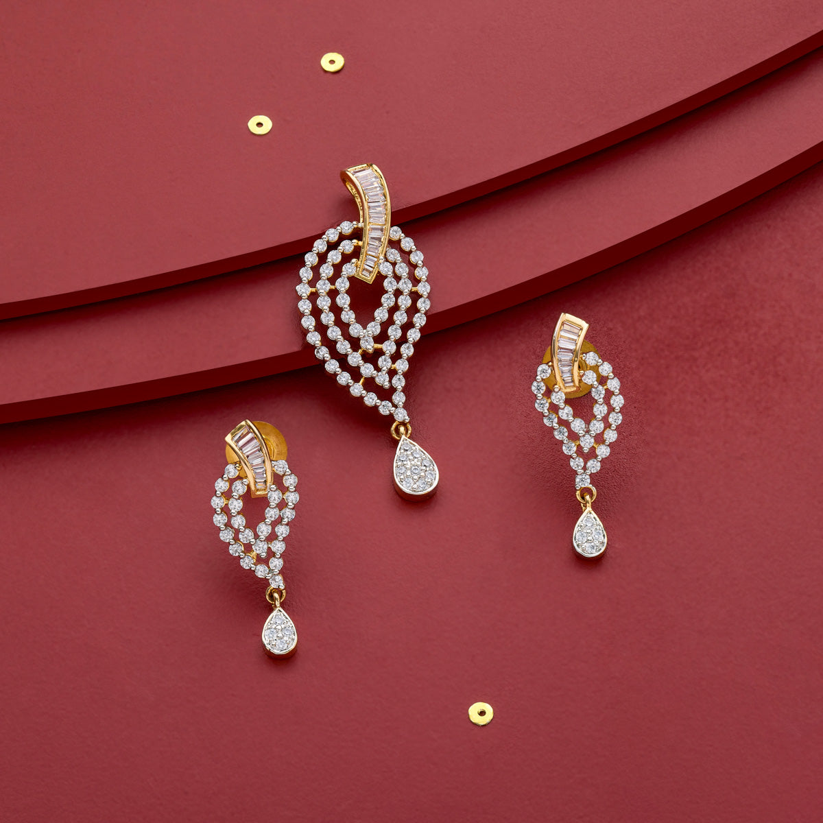 Kushal's Fashion Jewellery Pendant Earring Set With Sparkling Cubic Zircons