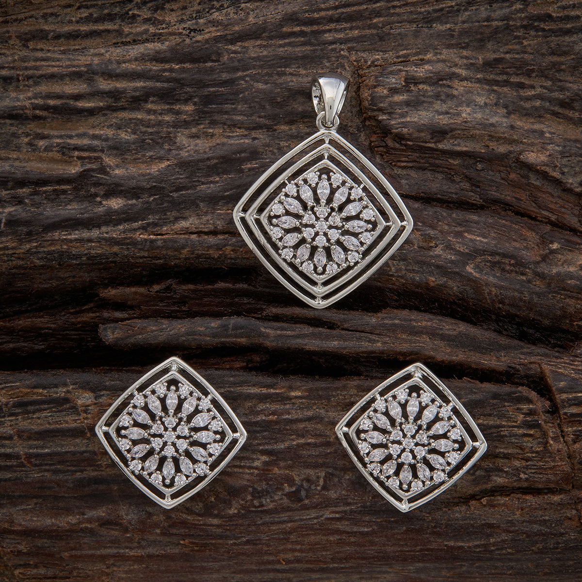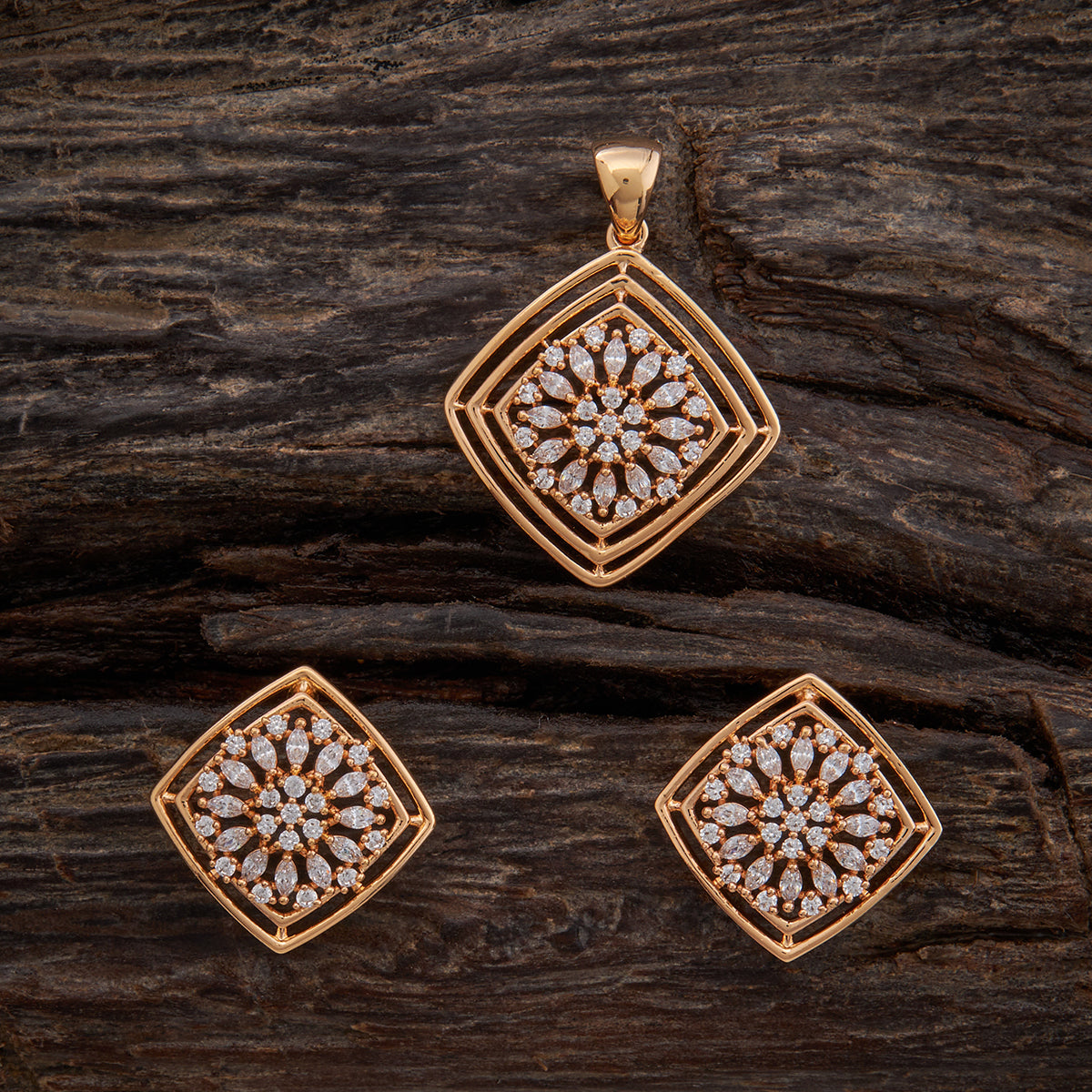 Kushal's Fashion Jewellery Flower Design Zircon Pendant Set