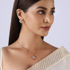 If you love minimalistic accessories with intricate work details and unique designs, our latest white zircon pendant and earrings set will make you fall in love with it. This set has Rhodium Meena polish with gold, rhodium, and rose gold polish on the accessories to give you an elegant and royal look.