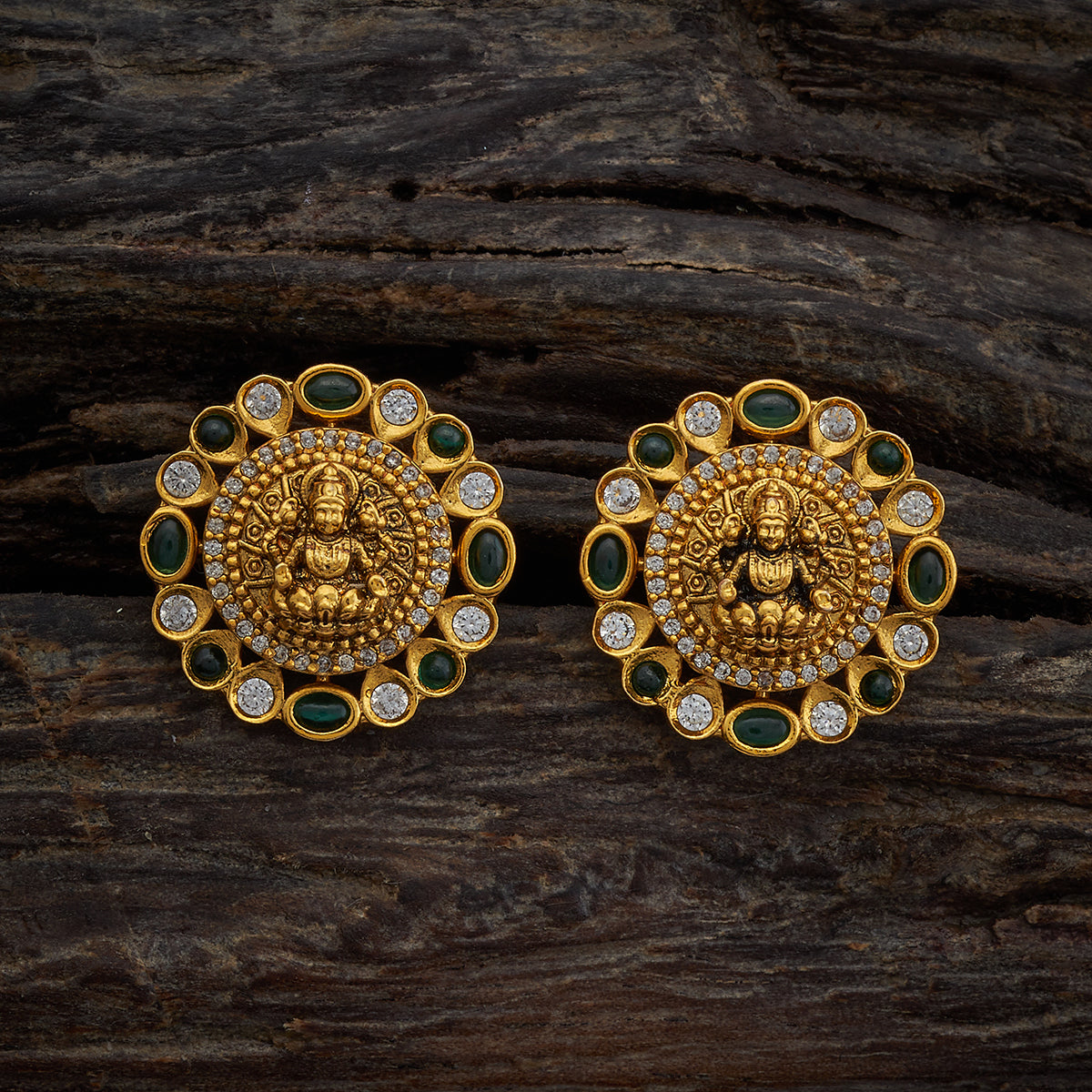Kushal's antique earrings is something you can never get enough of. The zircon stones are expertly engraved on these stud earrings, providing an outstanding design and appearance, and the copper alloy base guarantees premium quality. Select these gold-polished earrings to elevate your look.