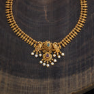 Add regal charm to your traditional attire with this stunning antique long necklace! It's the perfect statement piece for sarees and lehengas, featuring ruby-green synthetic stones and beads, all set in luxurious gold polish. Whether for weddings or festive occasions, this necklace will elevate your ethnic look with timeless elegance and grace.