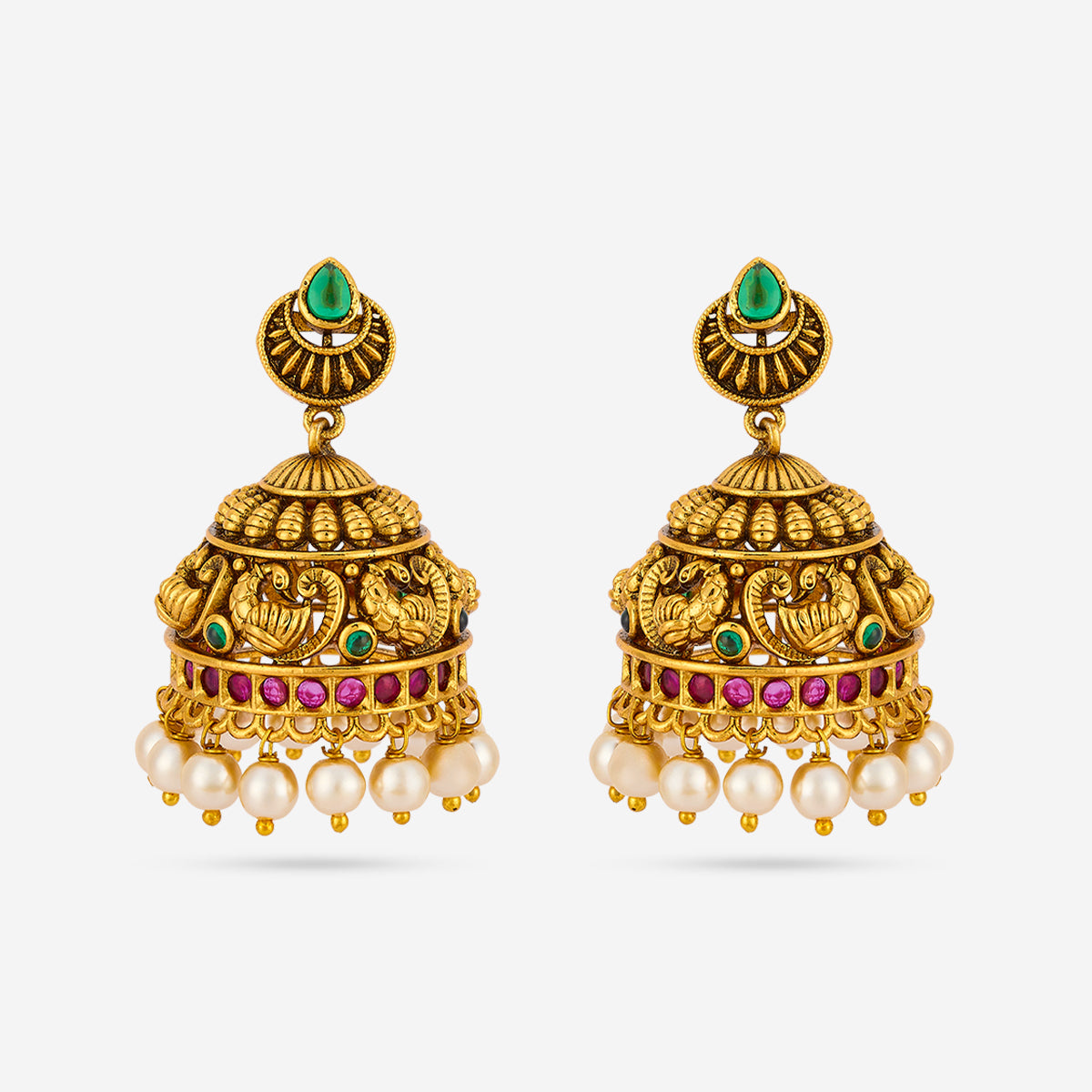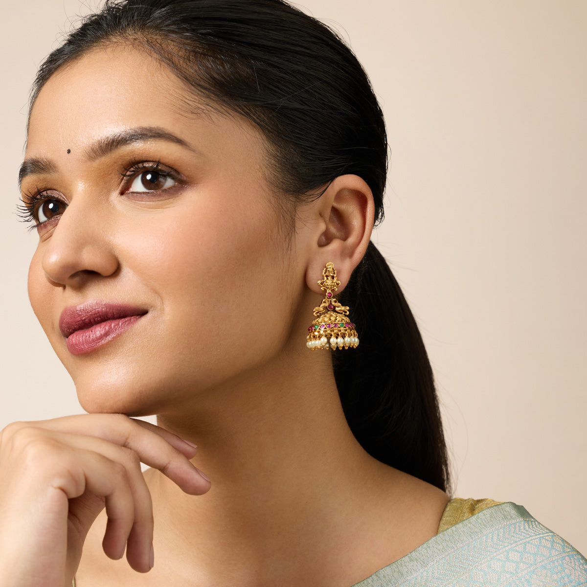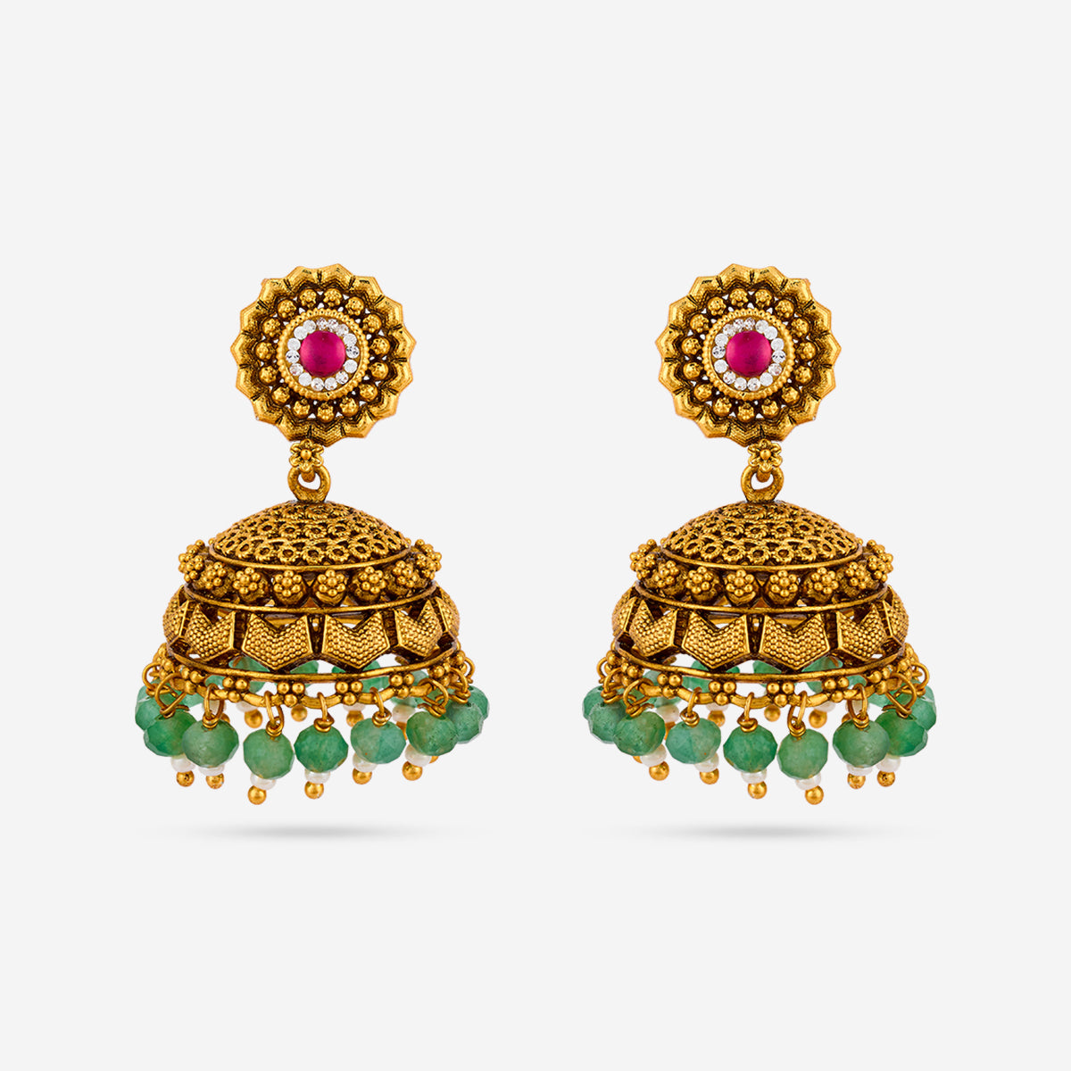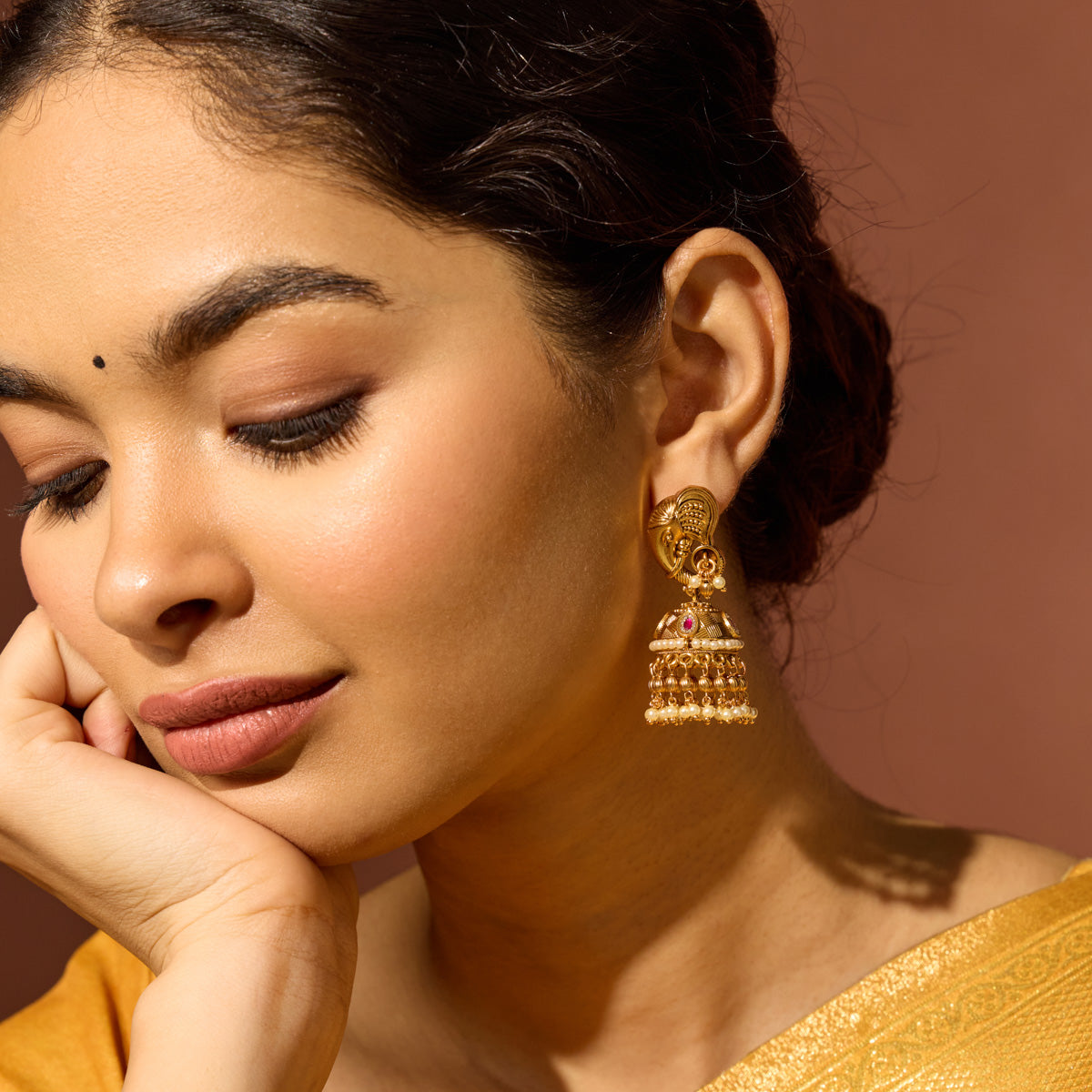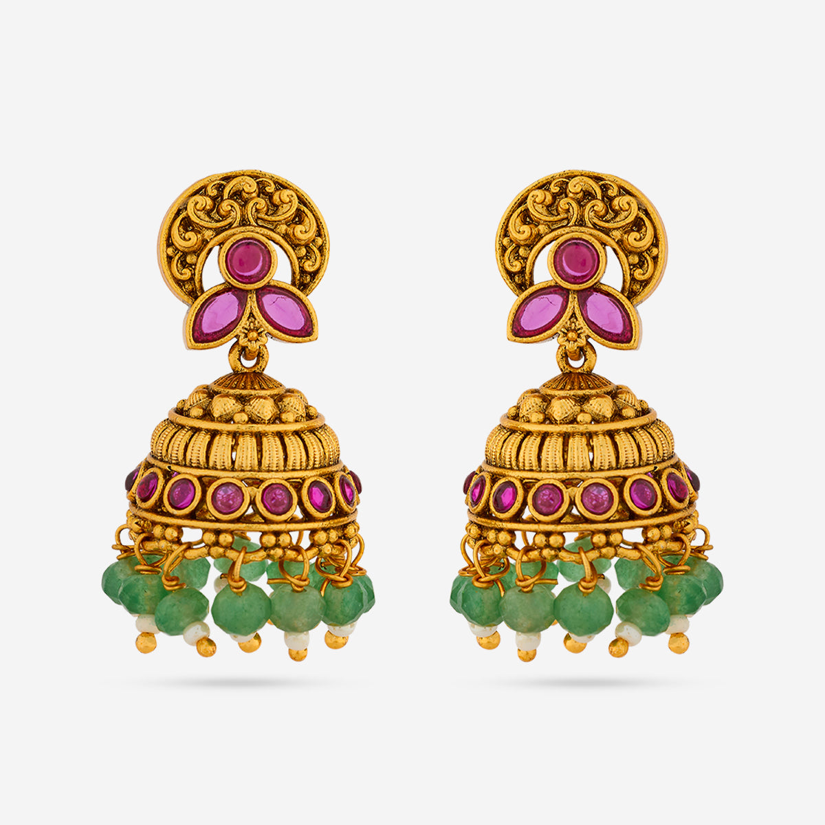 It presents the rich heritage of jhumkas earrings by offering a plethora of styles as per modern preferences. From classic gold and silver to precious stones inlaid within these jhumkas, our designs are a synthesis of tradition with innovation. While you may fancy the intricate work of temple jewelry or the elegant simplicity of jhumkas worn today, for every occasion in your life, there is the perfect pair available in our collection.