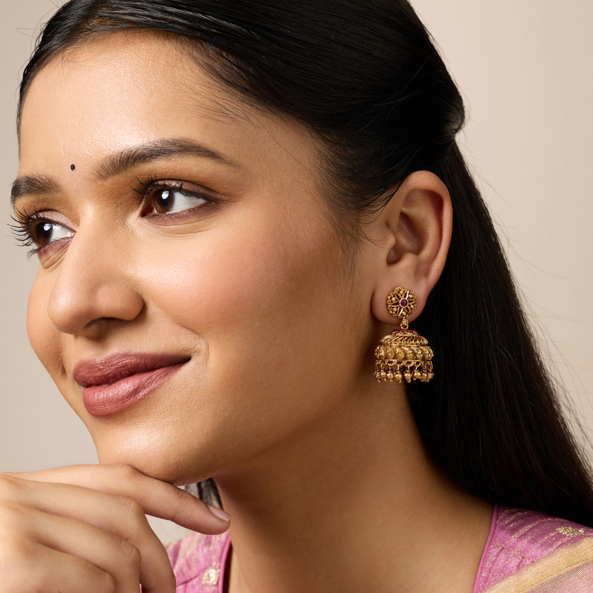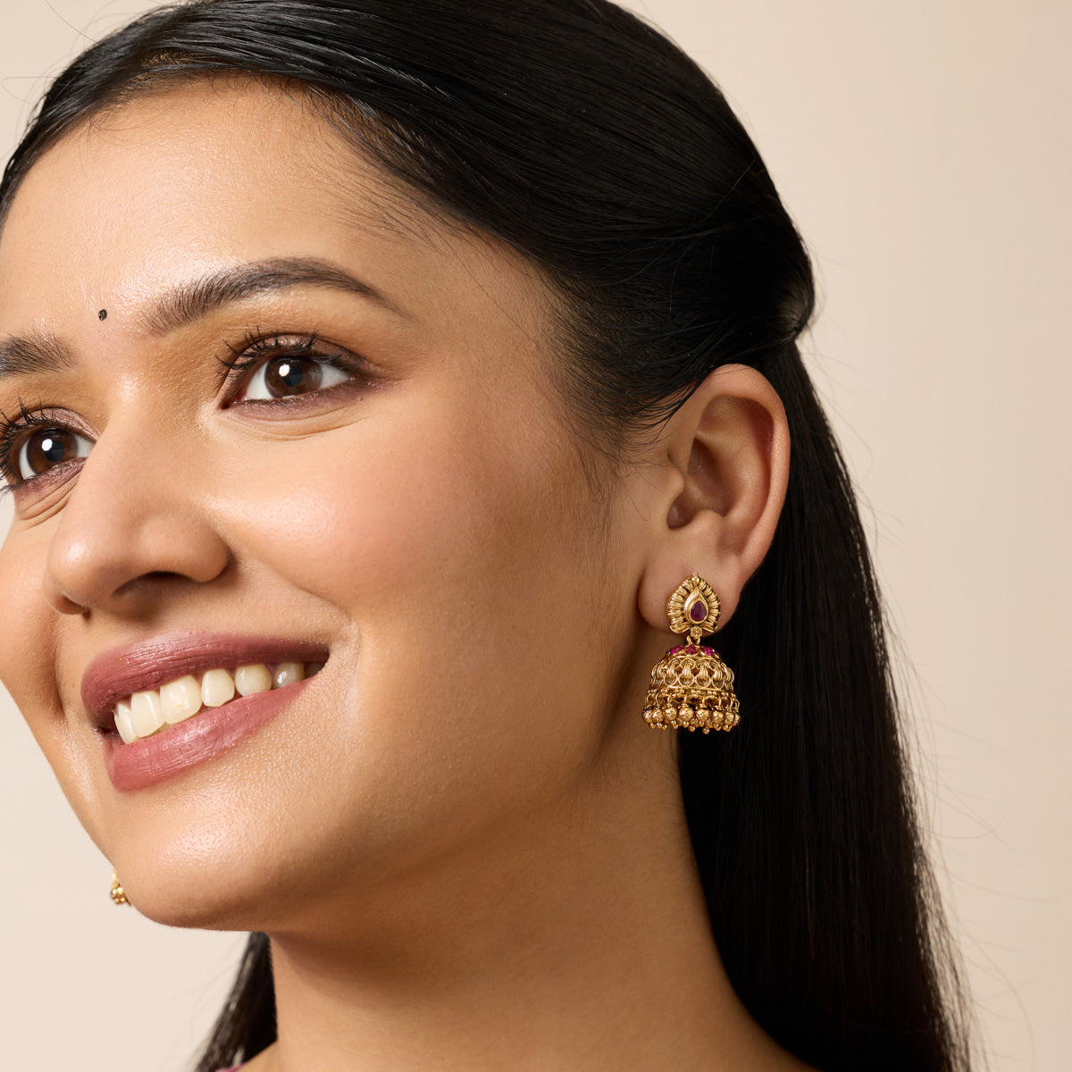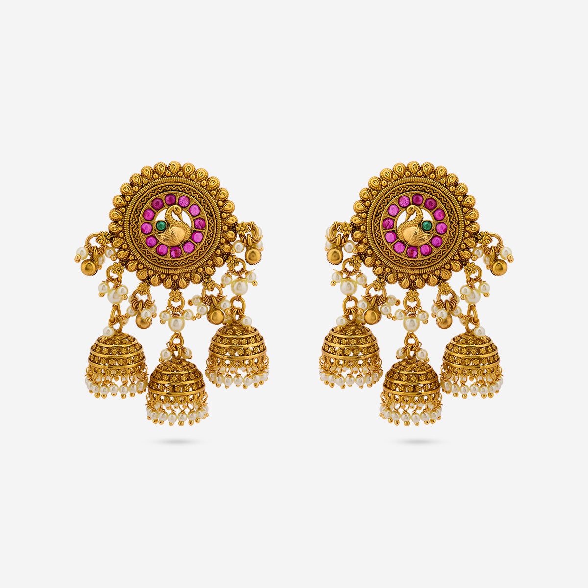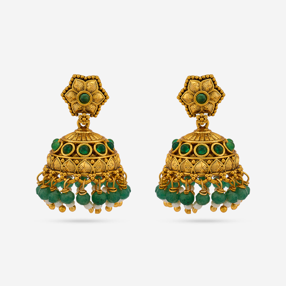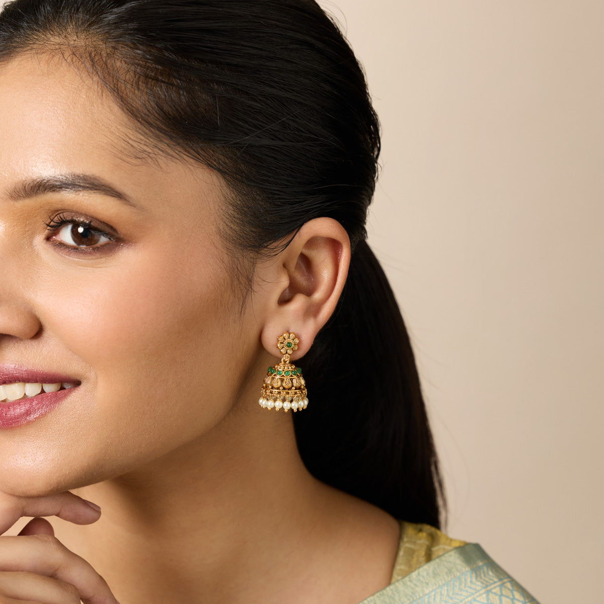 It presents the rich heritage of jhumkas earrings by offering a plethora of styles as per modern preferences. From classic gold and silver to precious stones inlaid within these jhumkas, our designs are a synthesis of tradition with innovation. While you may fancy the intricate work of temple jewelry or the elegant simplicity of jhumkas worn today, for every occasion in your life, there is the perfect pair available in our collection.