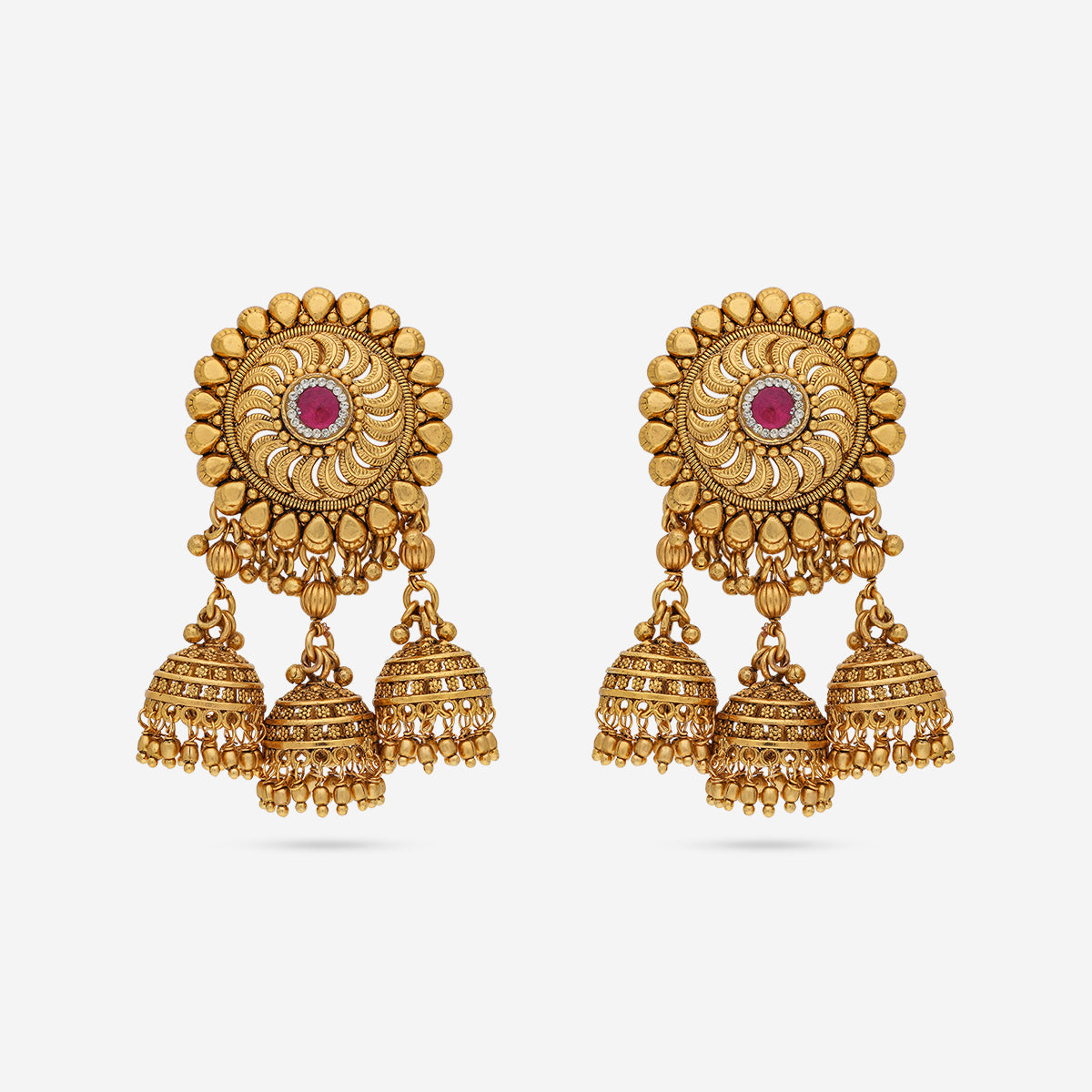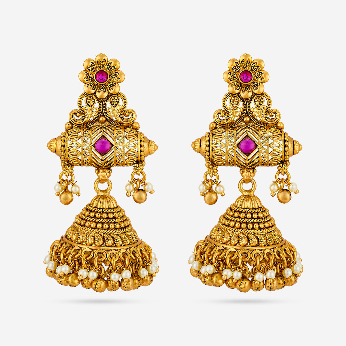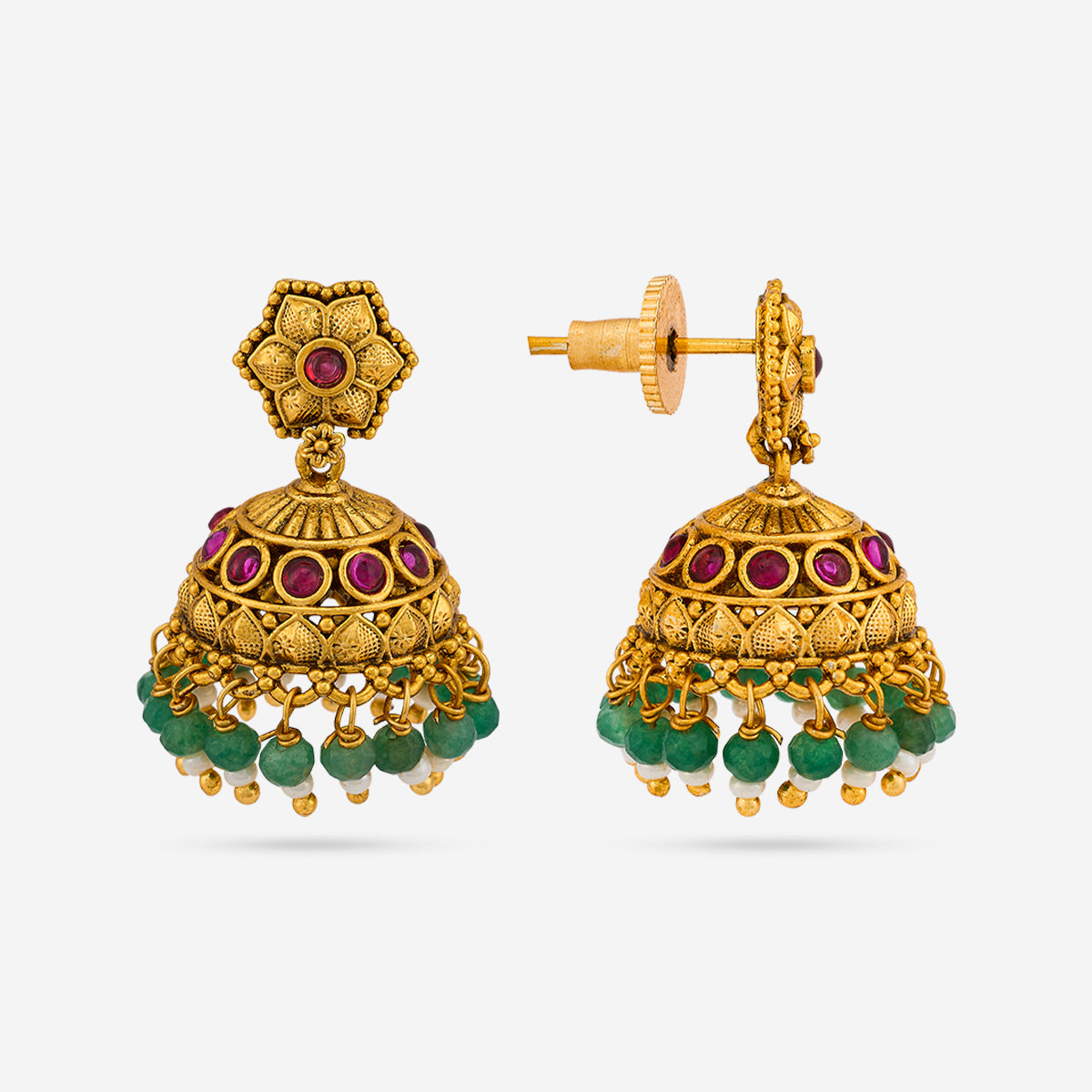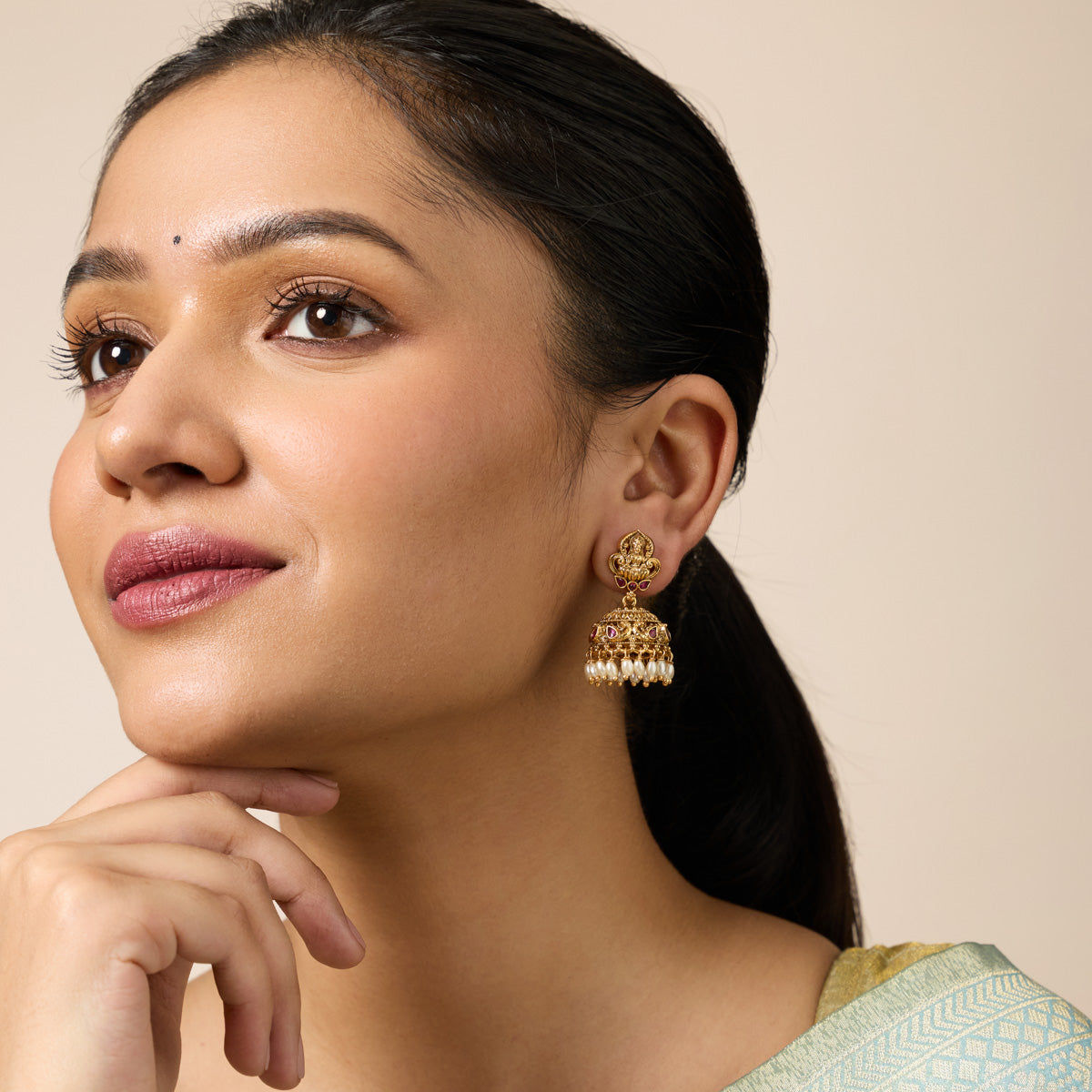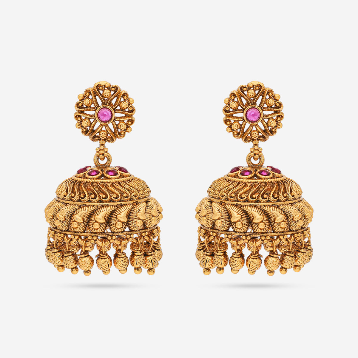 It presents the rich heritage of jhumkas earrings by offering a plethora of styles as per modern preferences. From classic gold and silver to precious stones inlaid within these jhumkas, our designs are a synthesis of tradition with innovation. While you may fancy the intricate work of temple jewelry or the elegant simplicity of jhumkas worn today, for every occasion in your life, there is the perfect pair available in our collection.