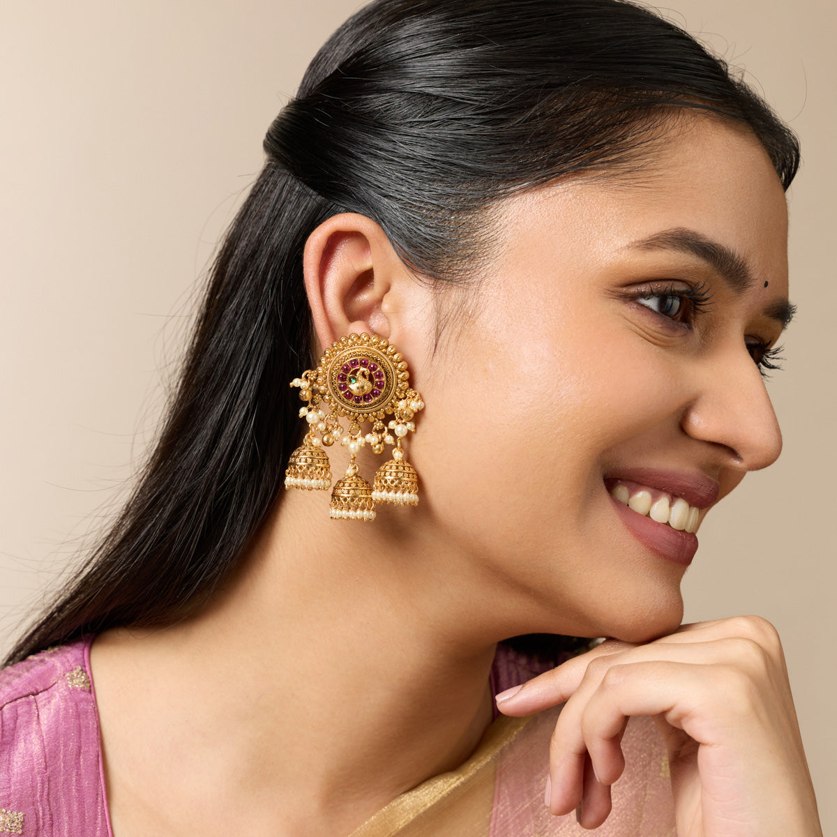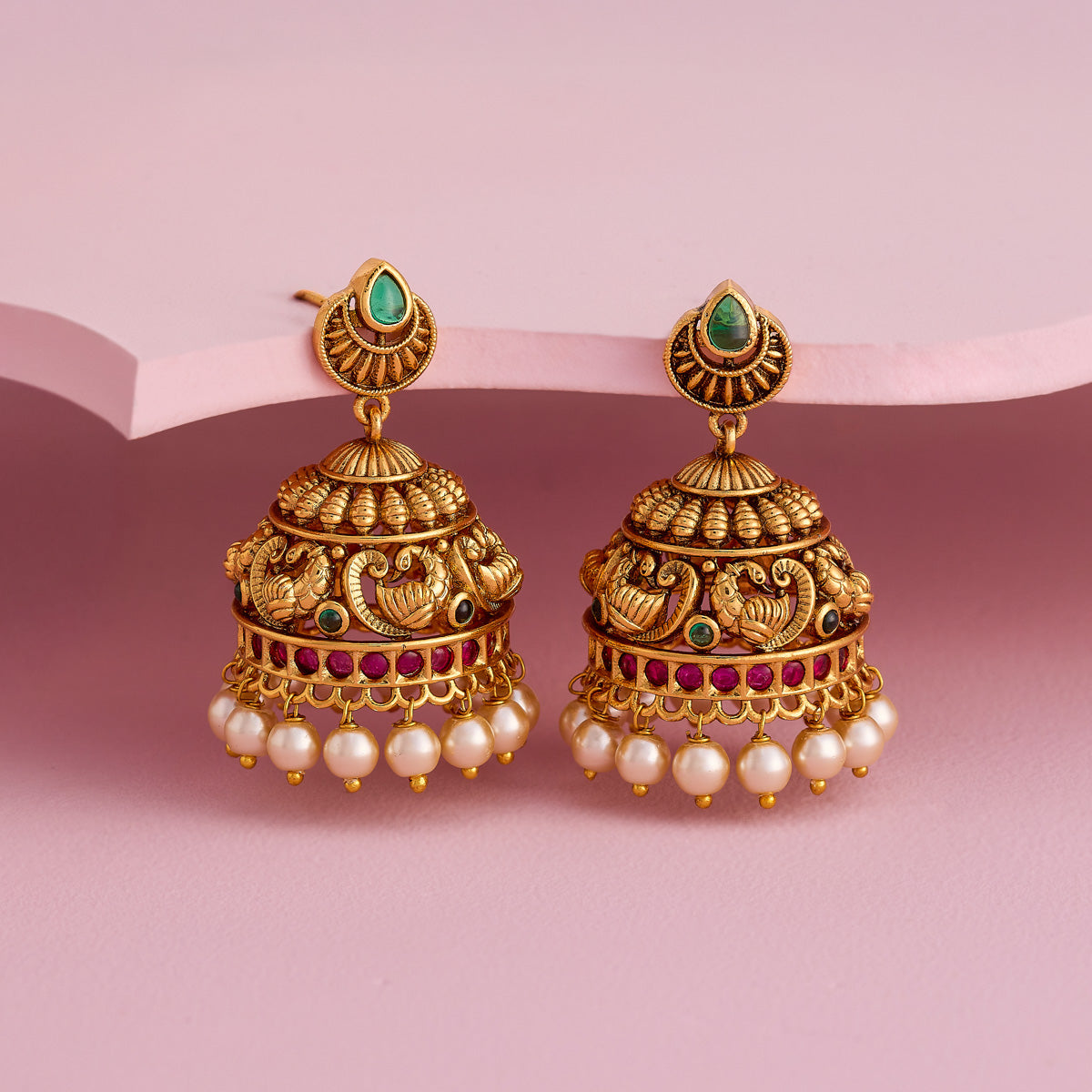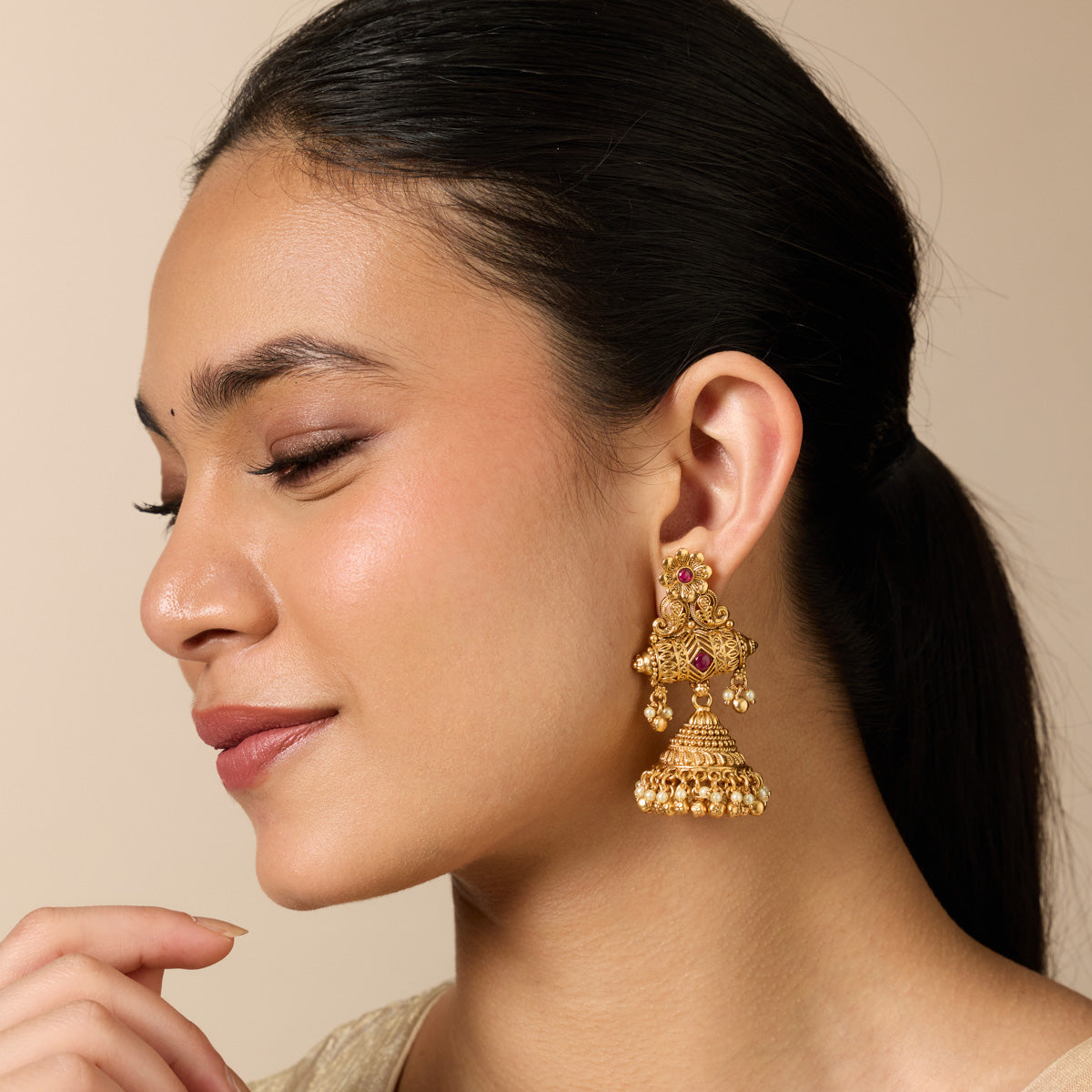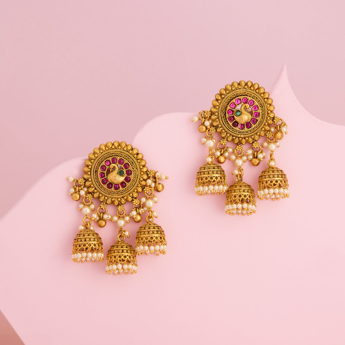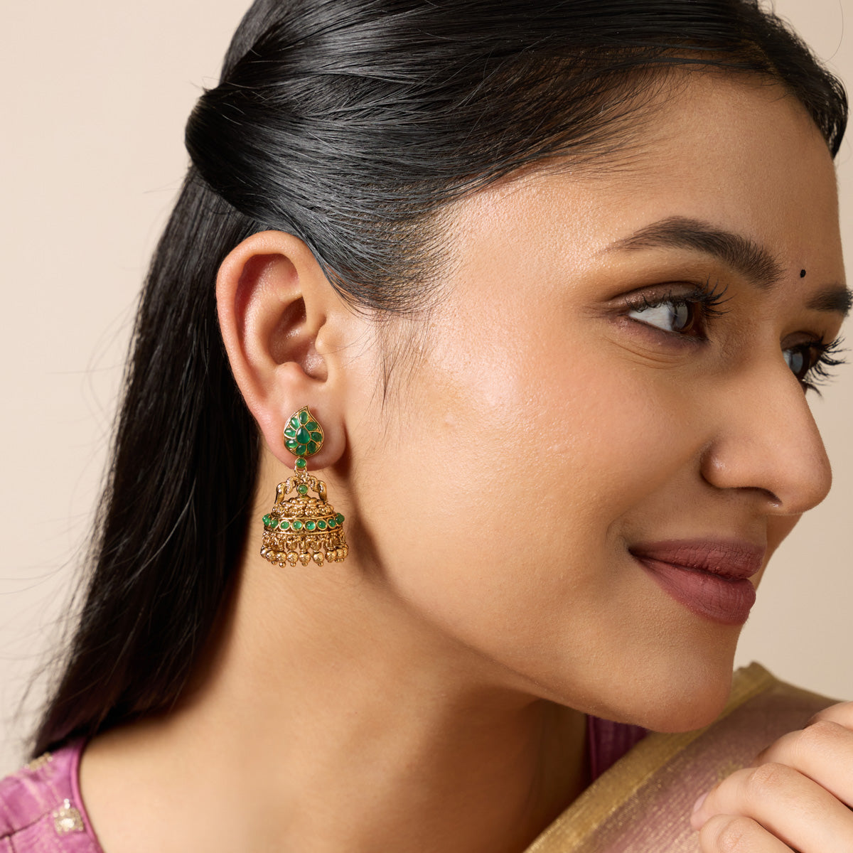 It presents the rich heritage of jhumkas earrings by offering a plethora of styles as per modern preferences. From classic gold and silver to precious stones inlaid within these jhumkas, our designs are a synthesis of tradition with innovation. While you may fancy the intricate work of temple jewelry or the elegant simplicity of jhumkas worn today, for every occasion in your life, there is the perfect pair available in our collection.