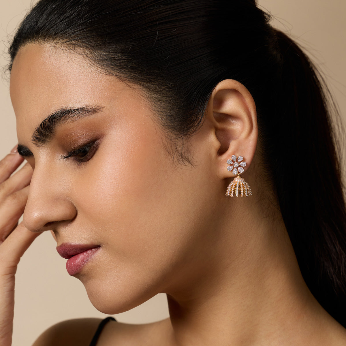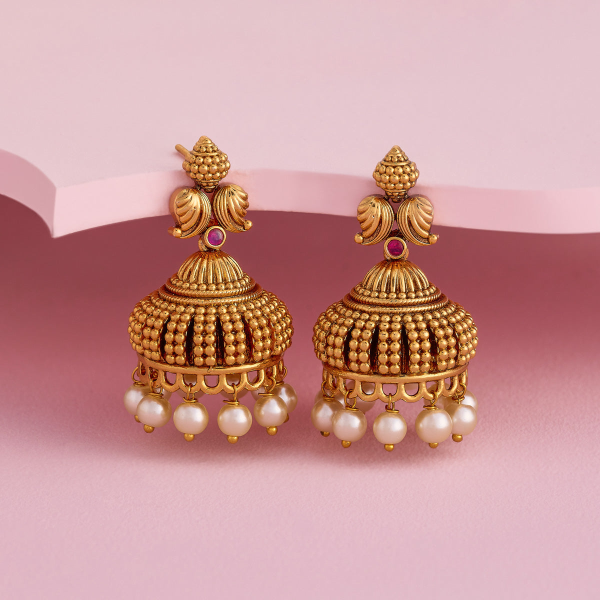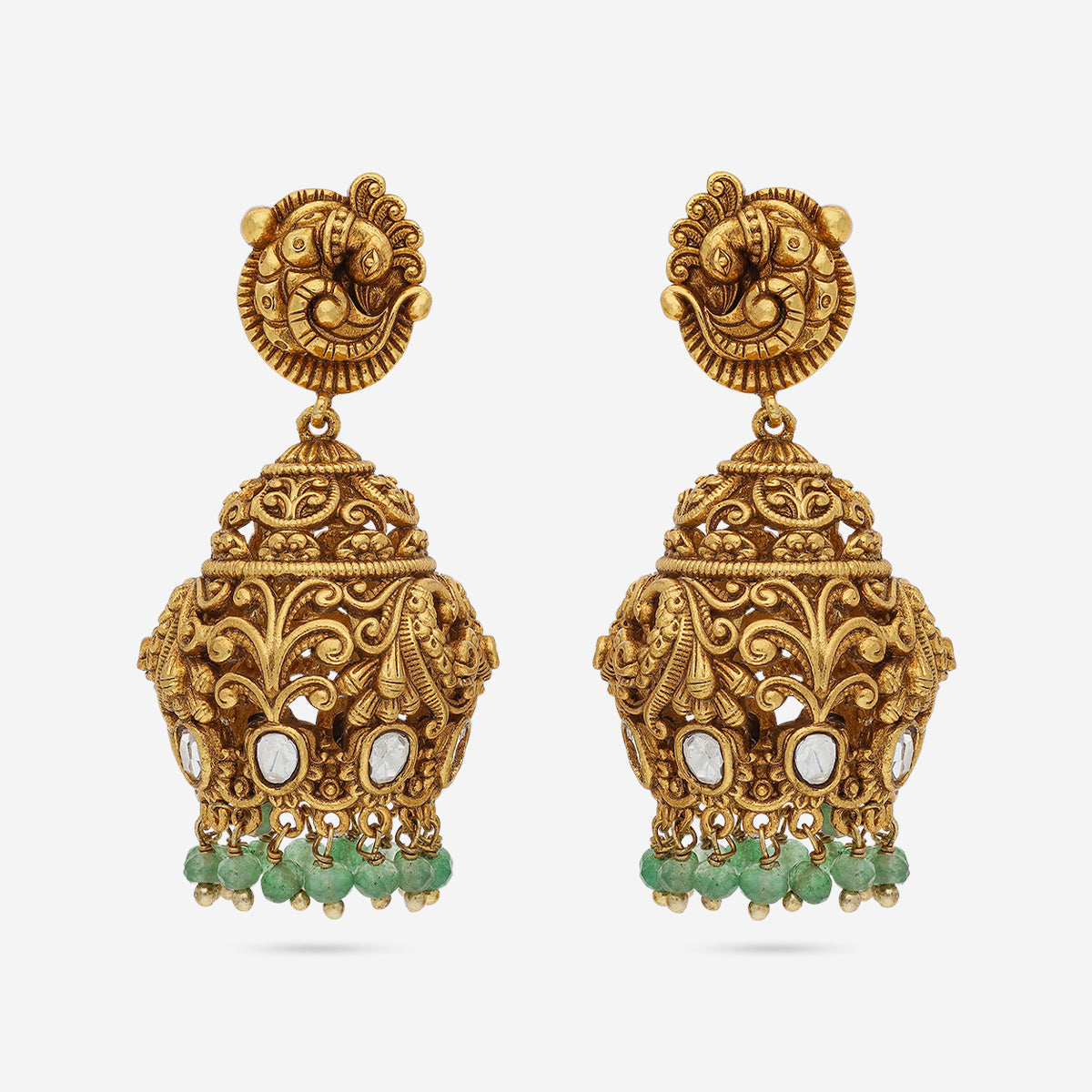It presents the rich heritage of jhumkas earrings by offering a plethora of styles as per modern preferences. From classic gold and silver to precious stones inlaid within these jhumkas, our designs are a synthesis of tradition with innovation. While you may fancy the intricate work of temple jewelry or the elegant simplicity of jhumkas worn today, for every occasion in your life, there is the perfect pair available in our collection.