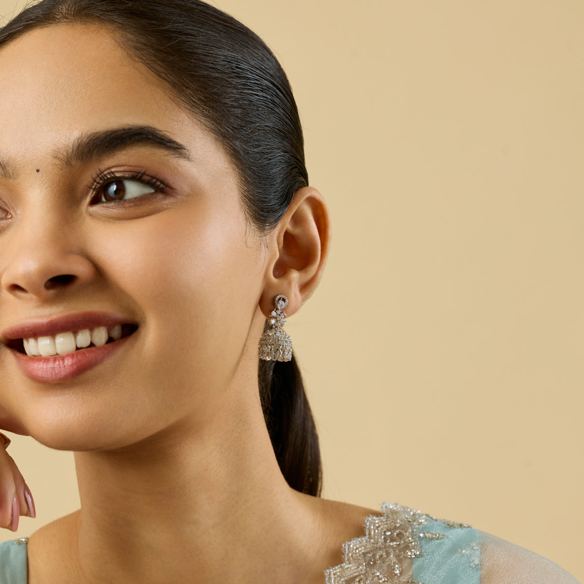 - Silver Jhumkas: For someone who likes something subtle yet still beautiful, silver jhumkas are the way to go. These earrings are great with any traditional or modern outfit and would be a fantastic addition to your jewelry box.