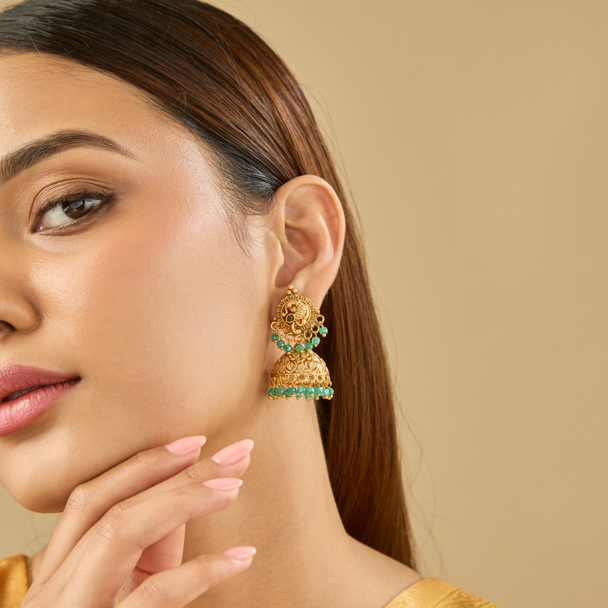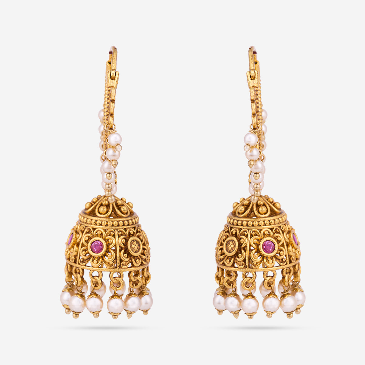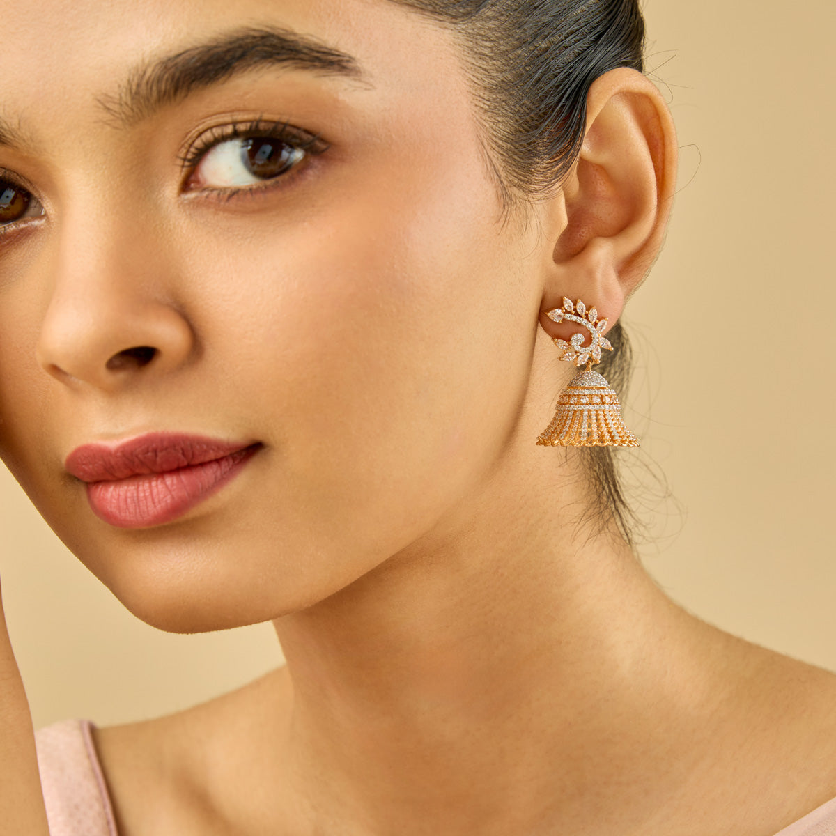 It presents the rich heritage of jhumkas earrings by offering a plethora of styles as per modern preferences. From classic gold and silver to precious stones inlaid within these jhumkas, our designs are a synthesis of tradition with innovation. While you may fancy the intricate work of temple jewelry or the elegant simplicity of jhumkas worn today, for every occasion in your life, there is the perfect pair available in our collection.
