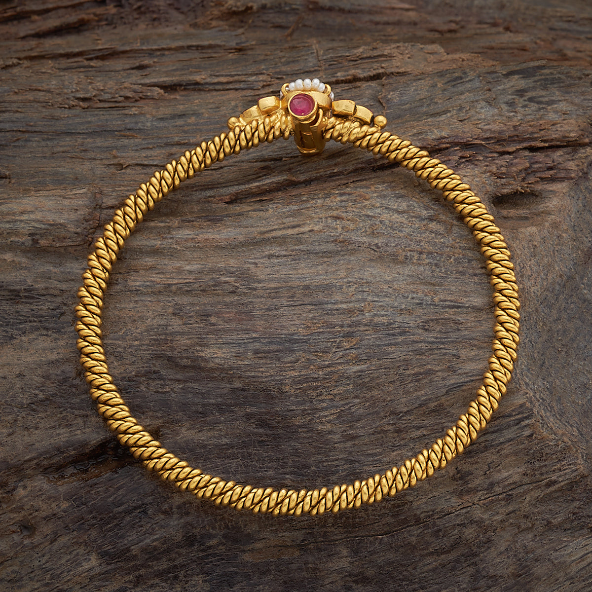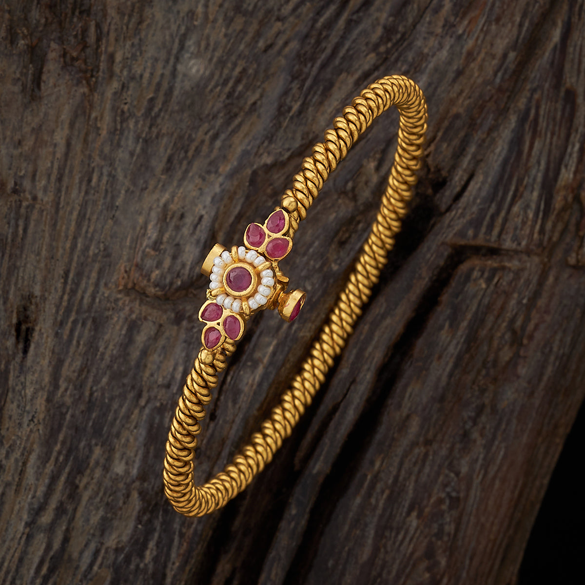 Savour the grandeur of our antique kada, which has been designed to have a vintage charm. Its elaborate design embodies traditional workmanship, adding a stunning touch to your ethnic costume that's ideal for celebratory occasions. This kada's design is influenced by conventional themes and symbols that have religious or cultural meaning.