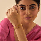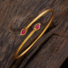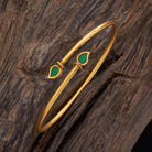 Adorn your wrists with this antique kada, featuring striking green or ruby synthetic stones and a radiant gold polish. This versatile piece is perfect for both Western and traditional looks, adding a touch of elegance to any ensemble. Wear solo or stack with bangles for a bold statement.
