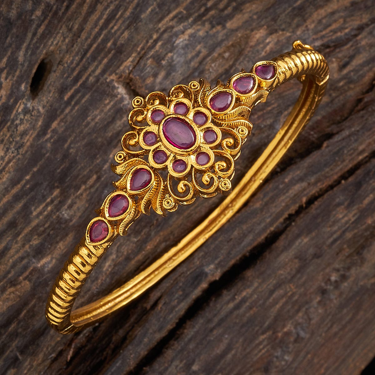 - Antique-Style Kadas: Distinguishable by their intricate designs, antique-style kadas are a match made in heaven for your traditional style. Pairing well with sarees and lehengas alike, they are a wedding season must-have.