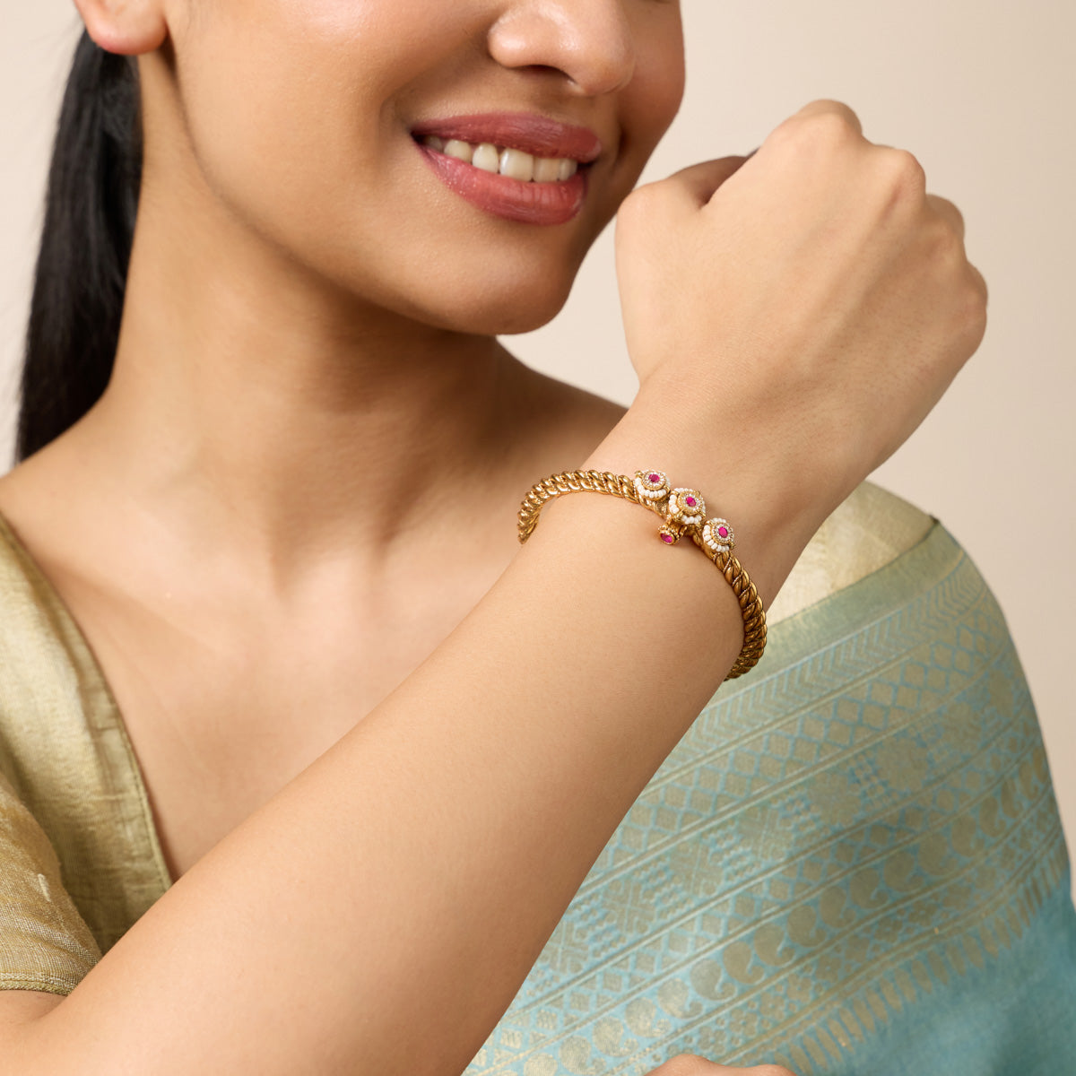 - For Weddings and Celebrations: Opt for antique-style kadas or zircon-studded kadas to complement your ethnic wear. These statement pieces can elevate your saree, lehenga, or salwar kameez.