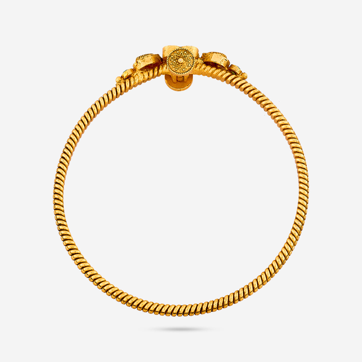 - Antique-Style Kadas: Distinguishable by their intricate designs, antique-style kadas are a match made in heaven for your traditional style. Pairing well with sarees and lehengas alike, they are a wedding season must-have.