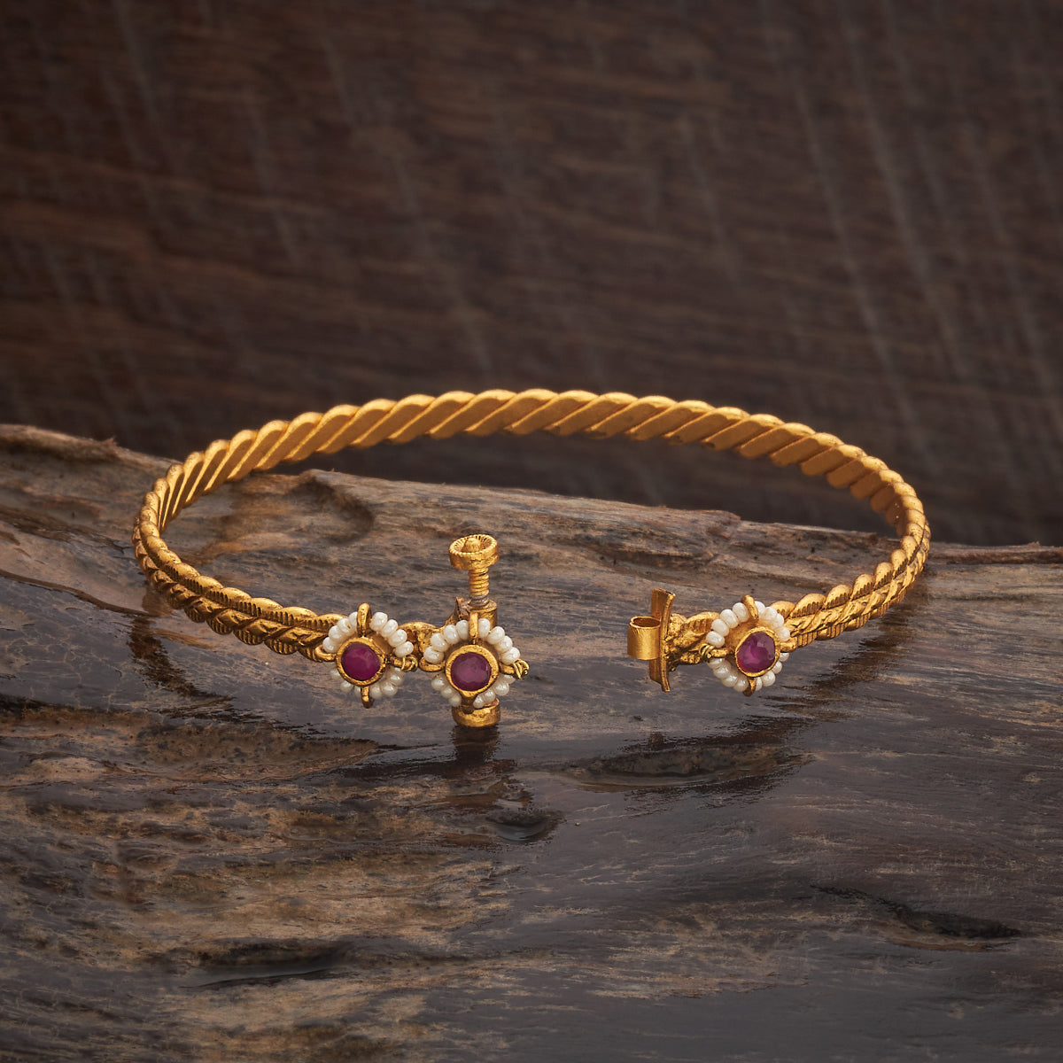 - Antique-Style Kadas: Distinguishable by their intricate designs, antique-style kadas are a match made in heaven for your traditional style. Pairing well with sarees and lehengas alike, they are a wedding season must-have.