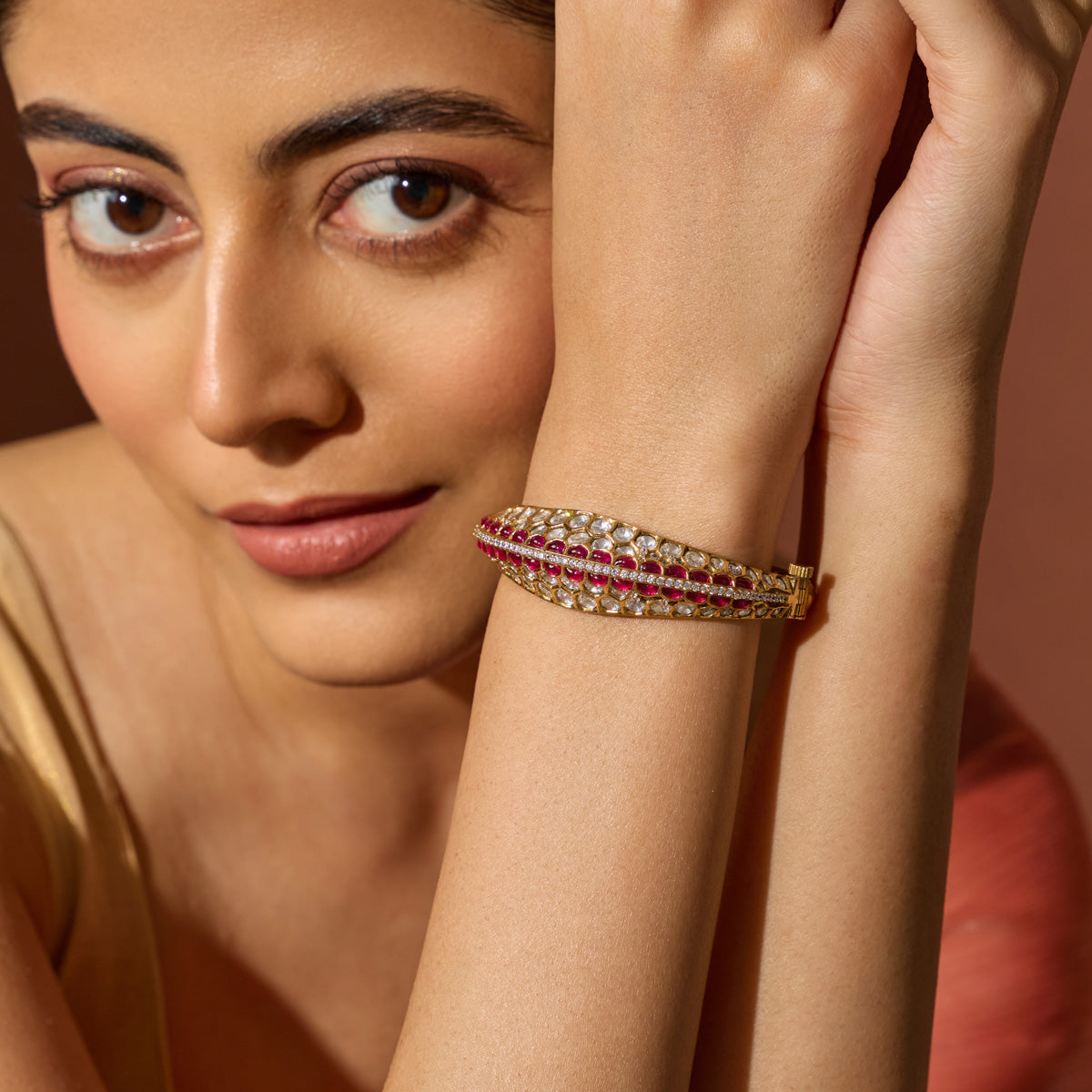Kadas, a bangle-like accessory worn on the wrists, is an irreplaceable part of the Indian trousseau. Kadas are considered a symbol of cultural identity and hold a special place in the hearts of Indians. Kada for women today are both a traditional and fashionable necessity.