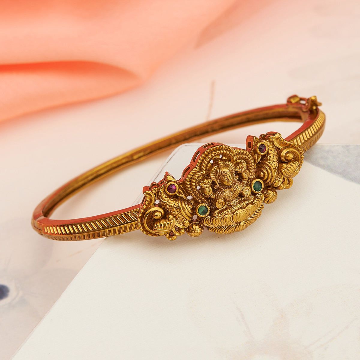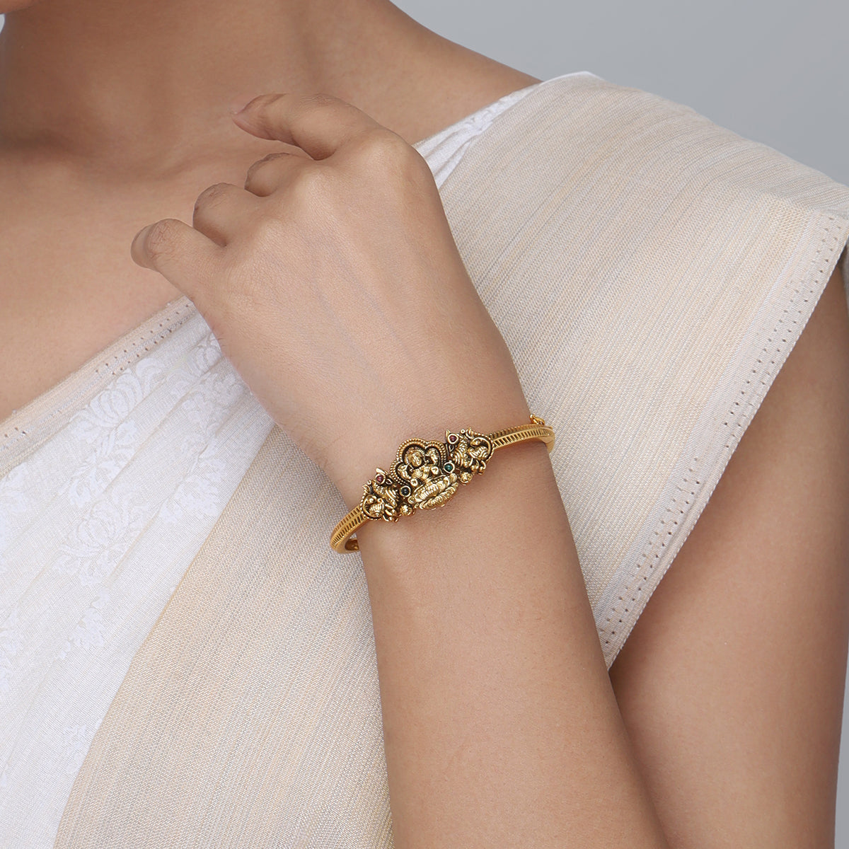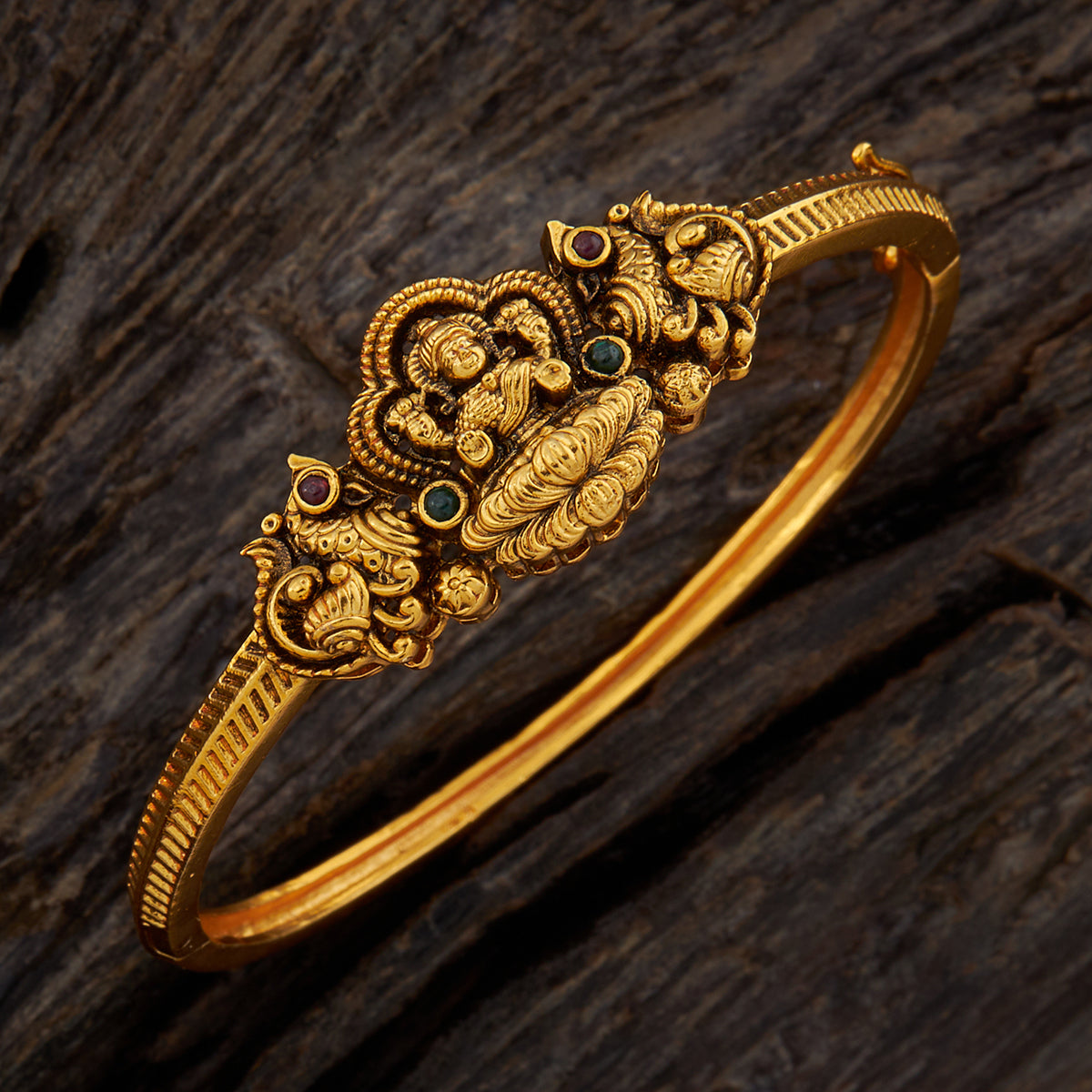 - Antique-Style Kadas: Distinguishable by their intricate designs, antique-style kadas are a match made in heaven for your traditional style. Pairing well with sarees and lehengas alike, they are a wedding season must-have.