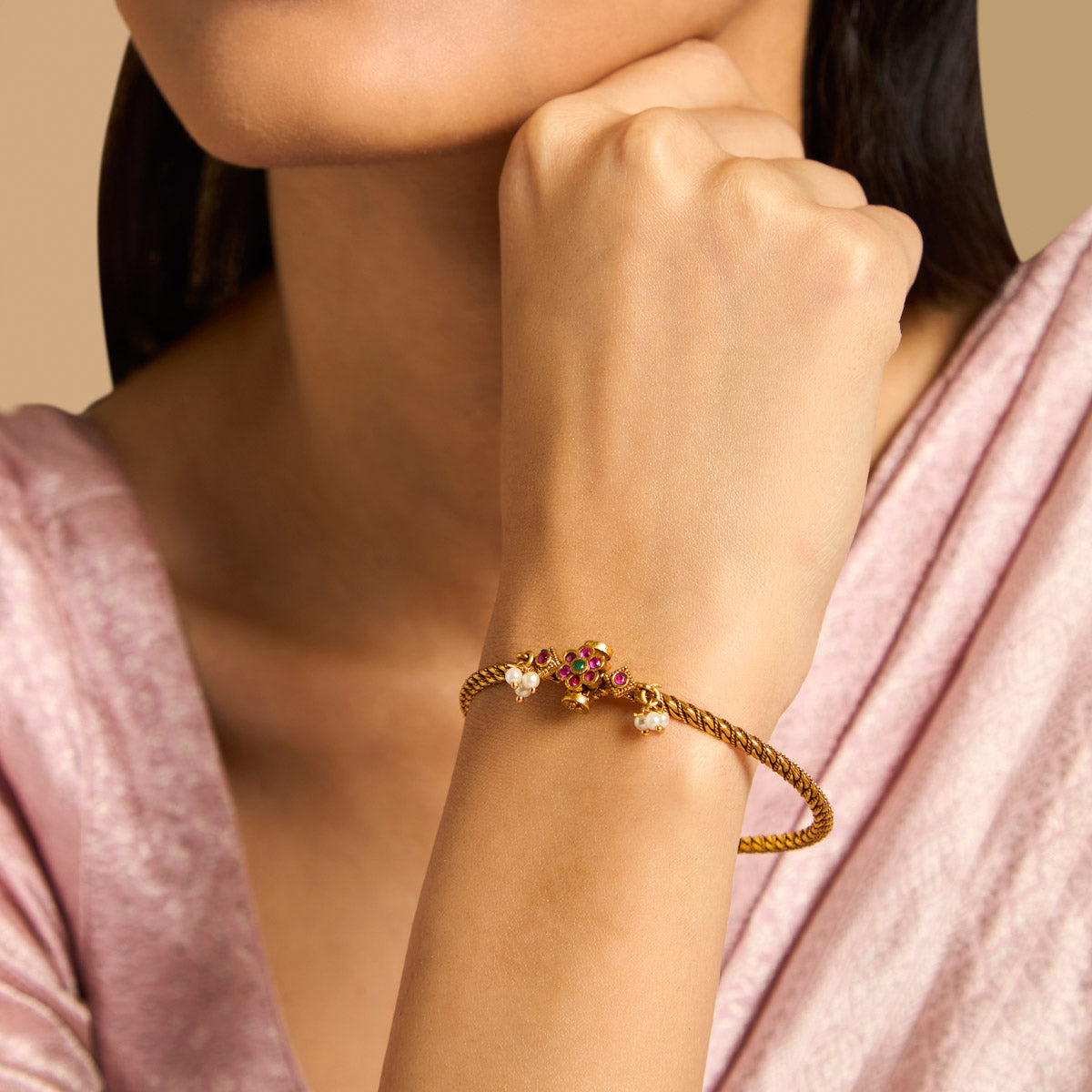 Kadas, a bangle-like accessory worn on the wrists, is an irreplaceable part of the Indian trousseau. Kadas are considered a symbol of cultural identity and hold a special place in the hearts of Indians. Kada for women today are both a traditional and fashionable necessity.