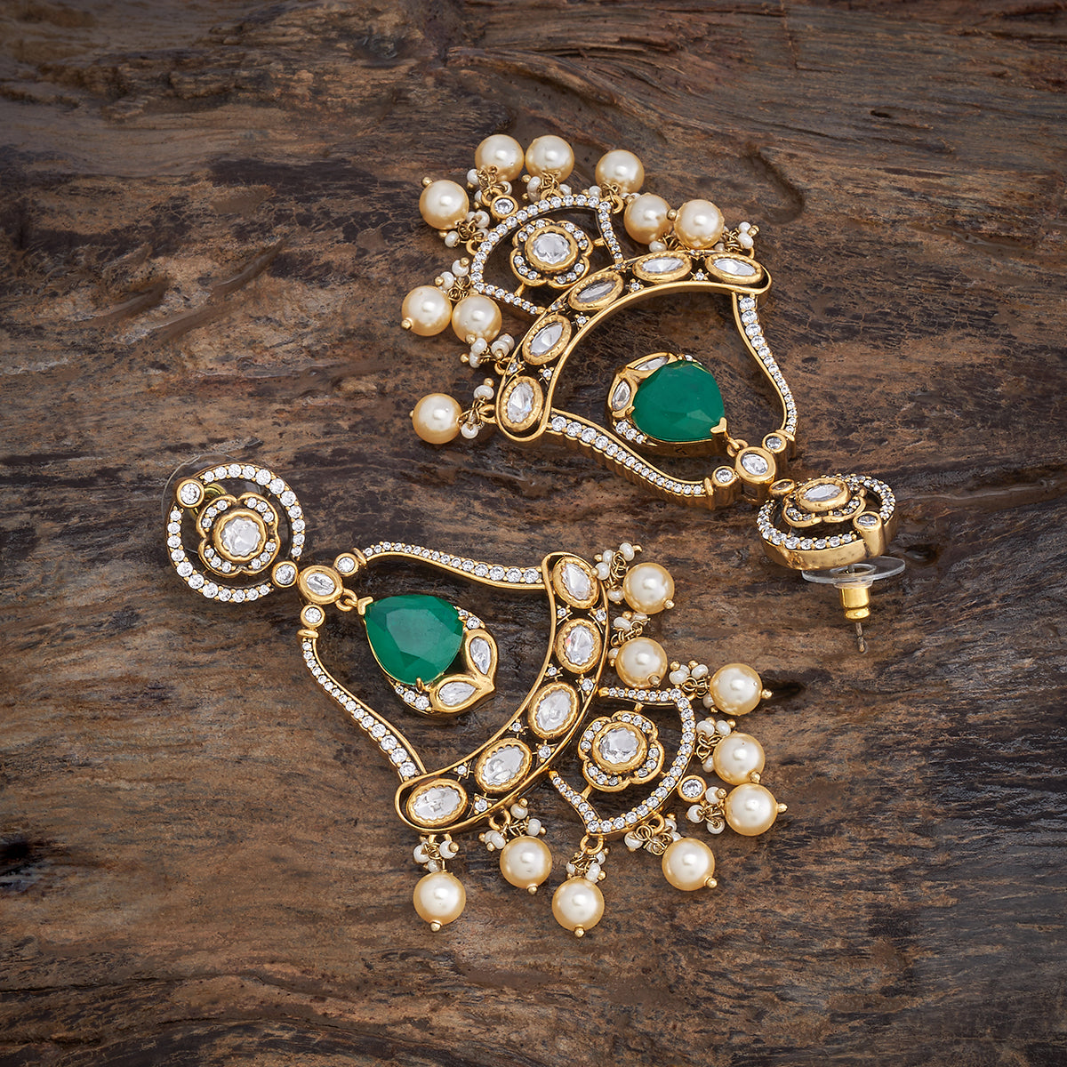 These elegant Kundan earrings feature luminous stones set in a polished Victorian-tone base. The push-back closure ensures secure wear. Perfect for weddings, they pair beautifully with a Kundan necklace or a simple saree, letting the earrings be the star of your outfit. Available in green, mint and ruby shades.