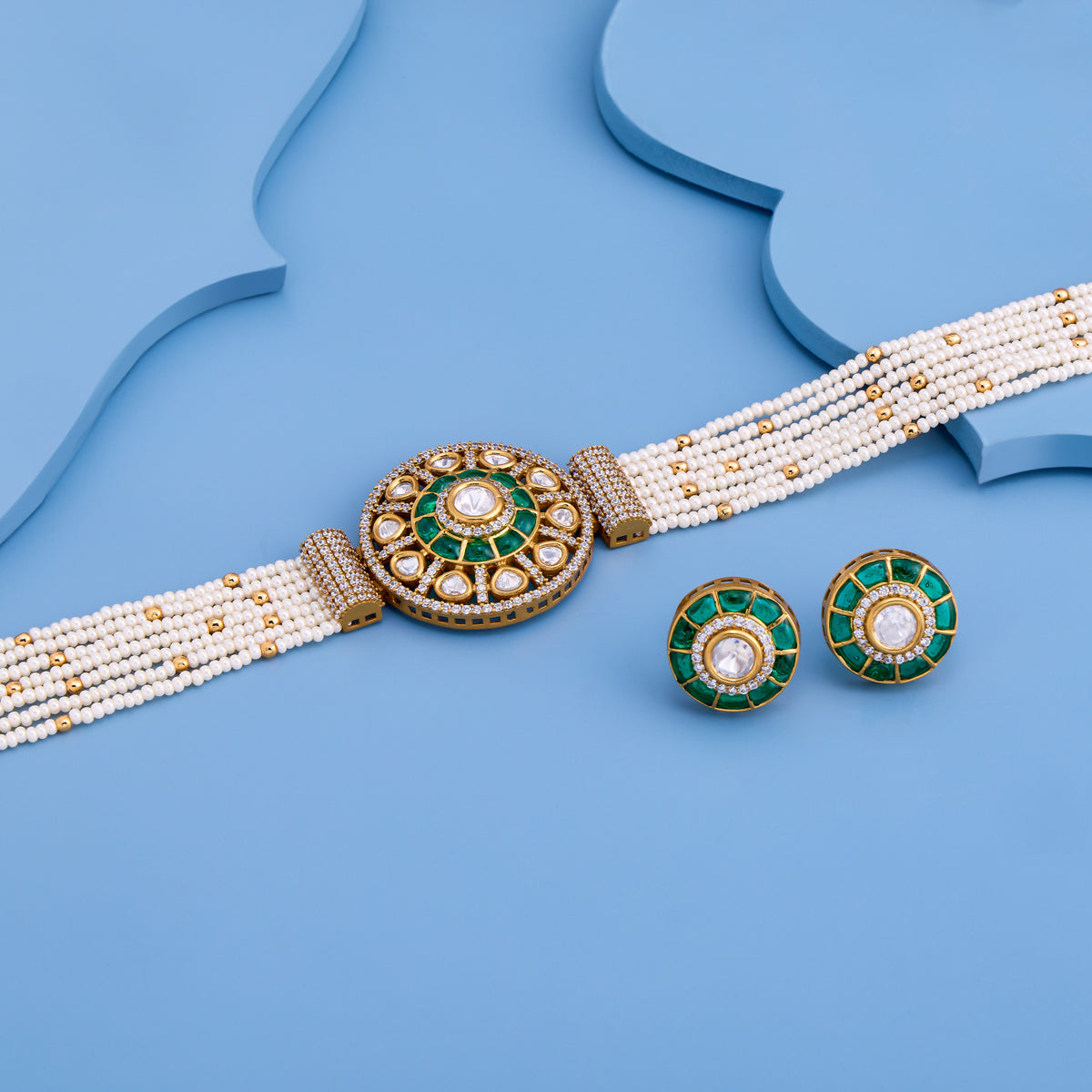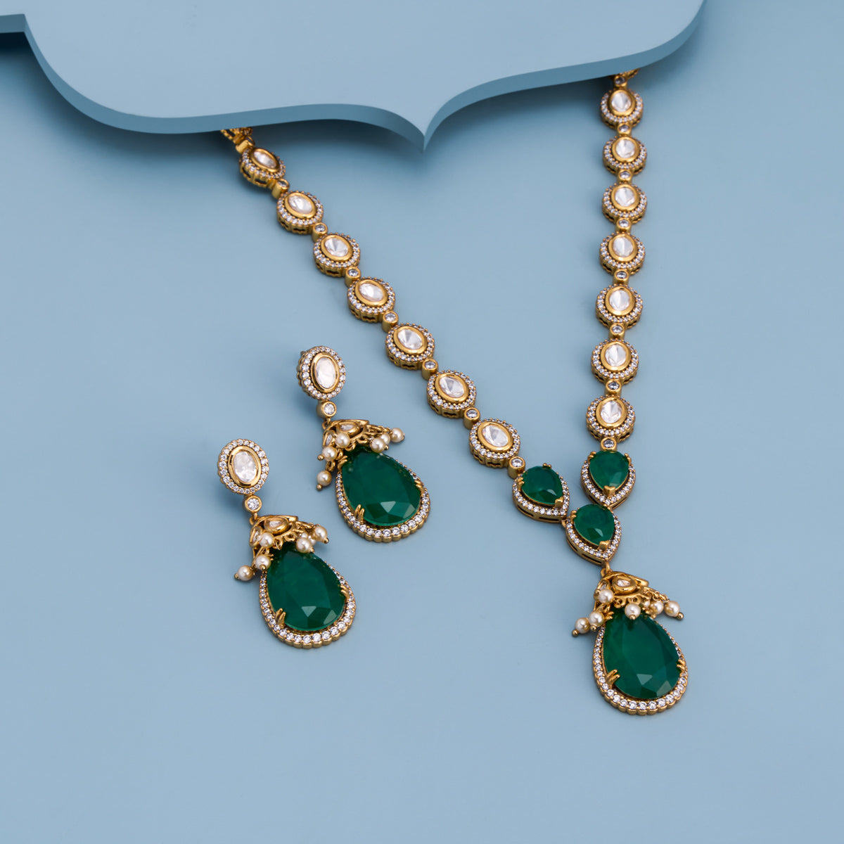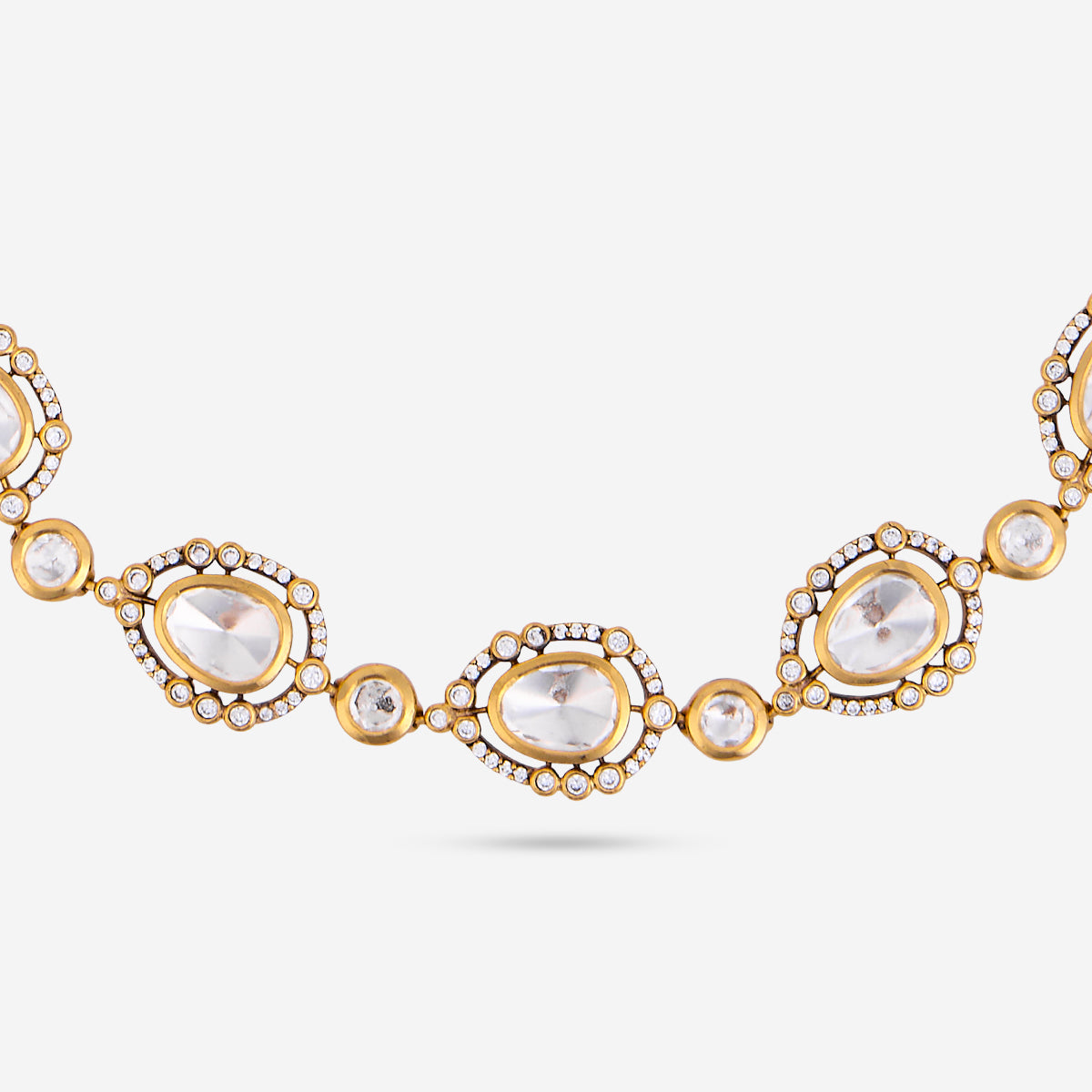 While both are used in traditional Indian jewelry, Kundan necklace sets use glass stones set with gold foil, whereas Polki uses uncut natural diamonds. Kundan jewelry necklace sets offer a similar royal look at a more affordable price, making them a popular choice for bridal and festive wear.