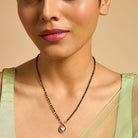 Make your special occasion more special with the elegant Kundan mangalsutra from Kushal's Fashion Jewellery. Featuring radiant white kundan stones set in a Victorian-polished copper alloy, this exquisite piece exudes timeless beauty. This long adjustable chain offers both comfort and style, making it a perfect blend of tradition and modernity. Explore our Kundan Mangalsutra necklace collection, where each piece is a testament to artistry and heritage. Adorned with intricate Kundan motifs, these necklaces are a symbol of everlasting love and beauty.