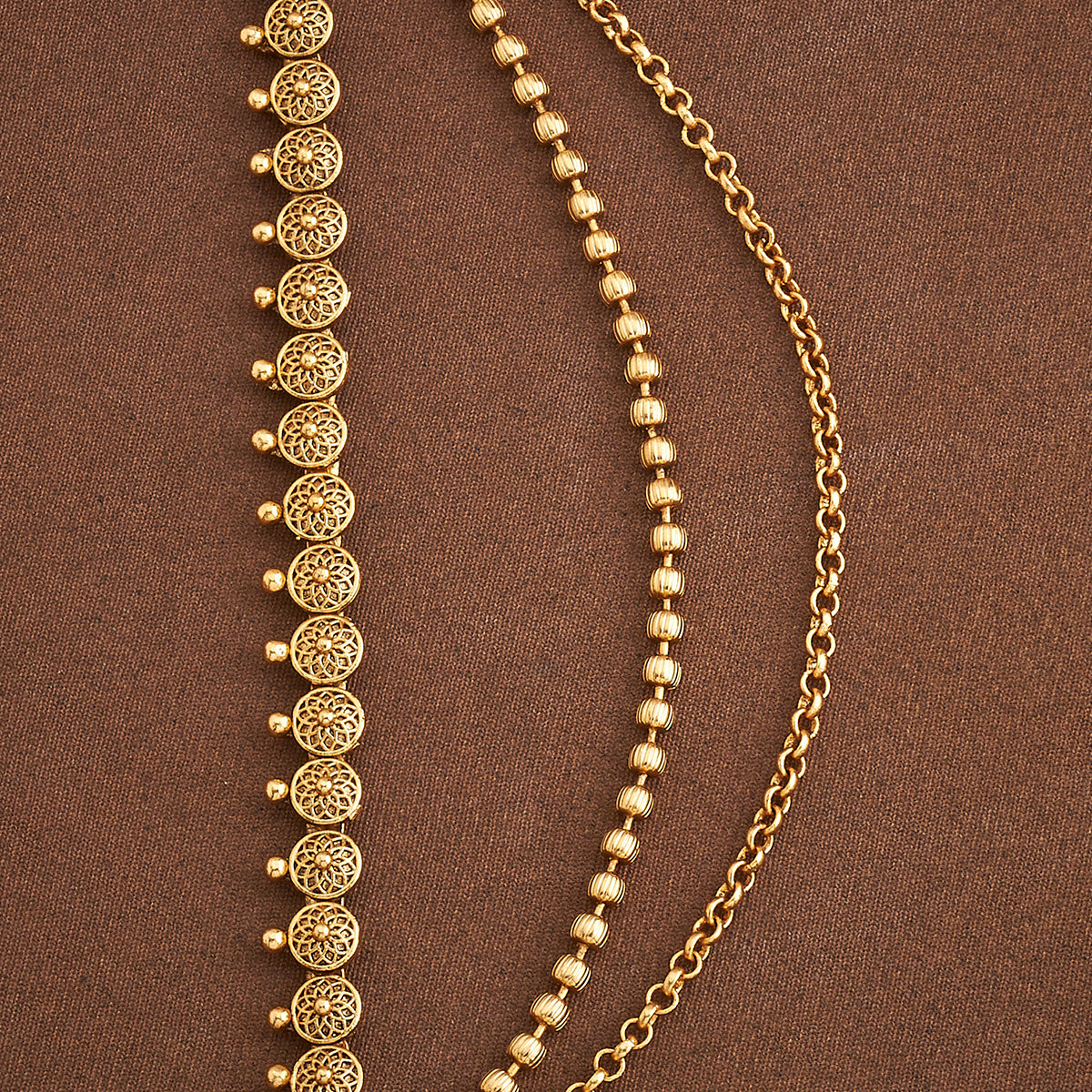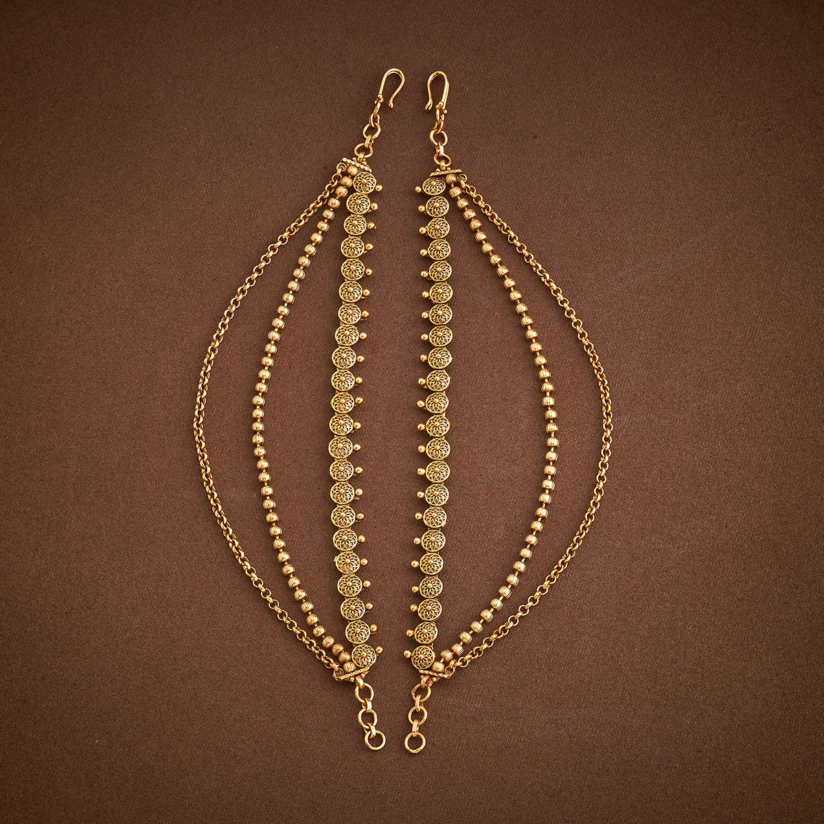 Kushal's antique matil is a timeless piece that is sure to turn heads wherever you go. Crafted to perfection, this matil is polished in gold and embodies traditional elegance with modern charm. It's designed to complement any outfit with a touch of sophistication.