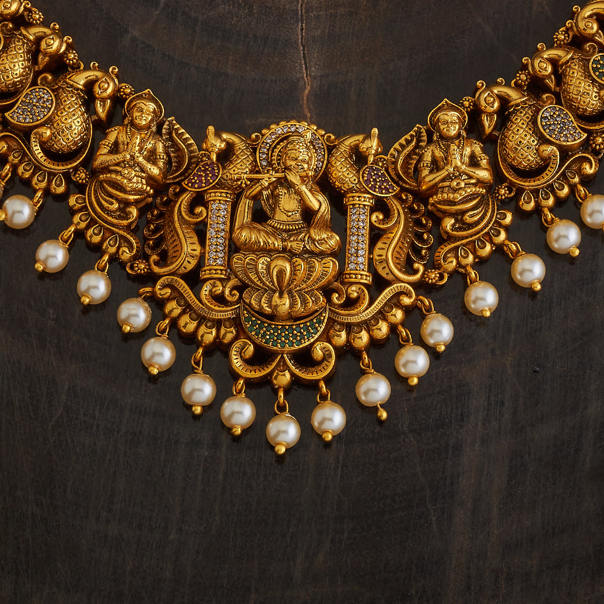 Classic just cannot get enough, and with necklaces so well-styled and so full of expression, perfect for building that statement in jewelry and the extra touch for any outfit, you would need a delicately made women's necklace or that luxury neckpiece shining out for the special occasions; check out our curated necklace collection that's sure to add some flair to your look for any style and occasion. Explore an eclectic mix of traditional Indian necklaces, elegantly crafted Mangalsutra designs, and gorgeous necklace chains that fit your personality and grace.