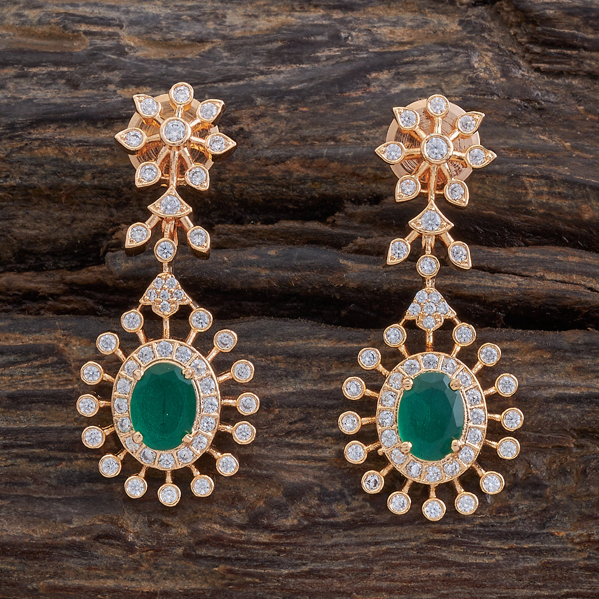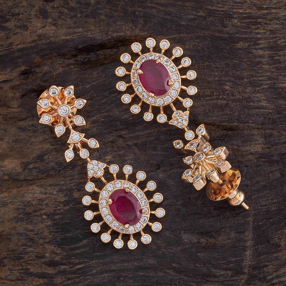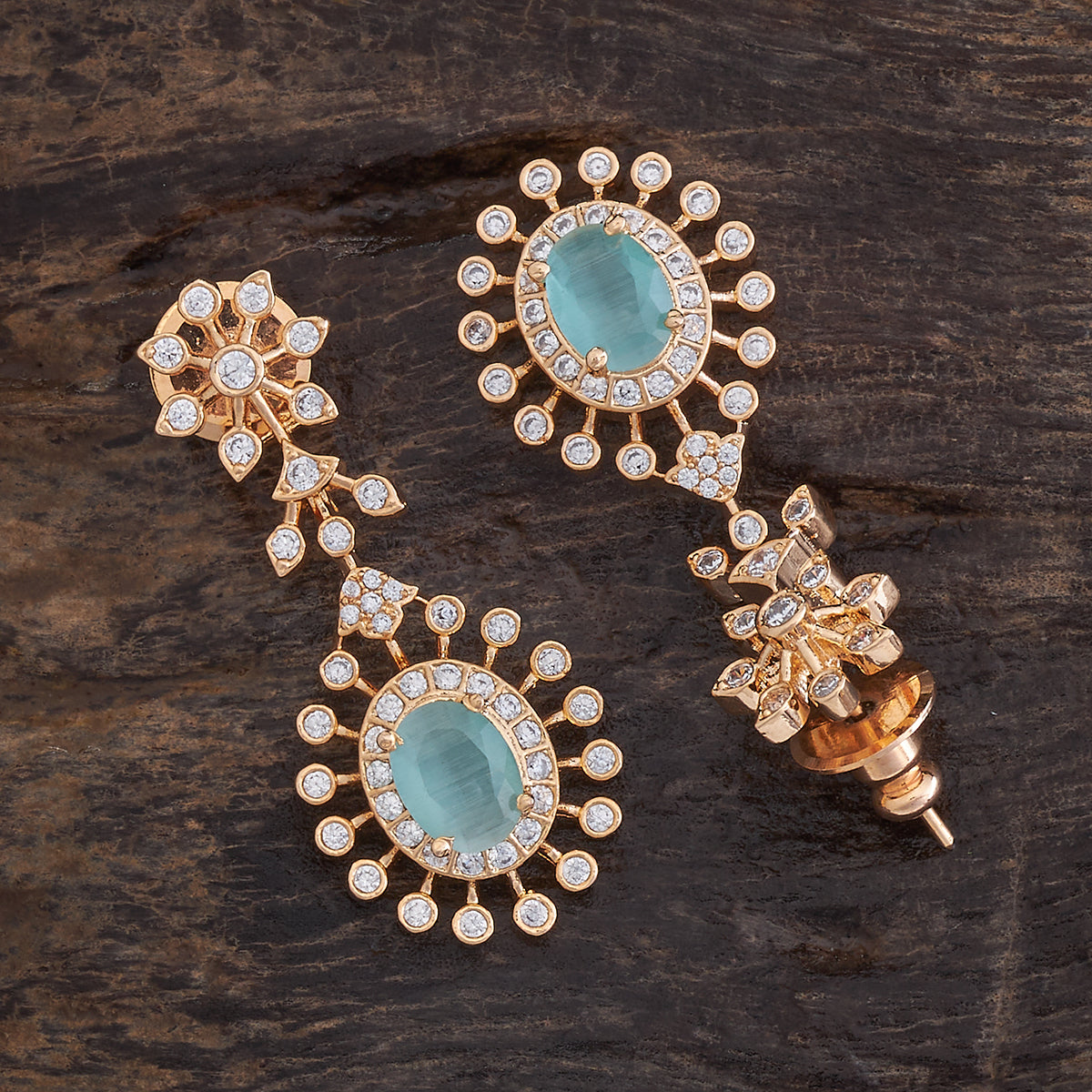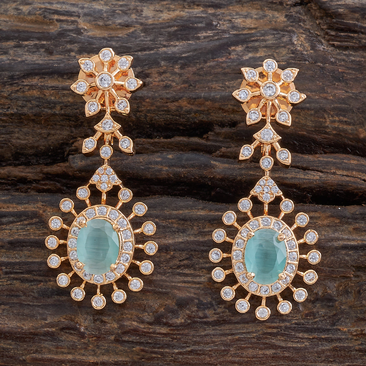 These zircon earrings are available in multiple shades, topped with a gold finish. You can choose from green, pink, mint, sapphire and ruby-coloured stones. The hanging earrings look best with an Anarkali suit and a neat bun. Its copper alloy base provides durability and the push-back closure adds convenience.
